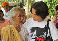 ၂၄.၃.၂ဝ၁၃ ရက္ေန႔ နံနက္ (၇းဝဝ) နာရီအခ်ိန္တြင္ မိတၳီလာၿမိဳ႕႐ွိ ေ႐ႊအုန္းပင္မိသားစု ျမန္မာ ထမင္းဆိုင္သို႔ေရာက္႐ိွခဲ့ၿပီး ေဒသခံလူမႈေရးသမားမ်ားႏွင့္လက္တြဲ၍ မီးေဘးသင့္ဒုကၡသည္မ်ားအား ေစာင့္ေ႐ွာက္ထားေသာ ဘုန္းႀကီးေက်ာင္းမ်ား၊ ကယ္ဆယ္ေရးစခန္းမ်ားသို႔ သြားေရာက္ေလ့လာခဲ့ၿပီး ရန္ကုန္ၿမိဳ႕မွ တပါးတည္း သယ္ေဆာင္လာေသာ ဆန္၊ ေခါက္ဆြဲေျခာက္၊ ပဲႏို႔ဗူး၊ အစ႐ွိသည့္ ေထာက္ပံ့ ေရးပစၥည္းမ်ား စုစုေပါင္း ေငြက်ပ္သိန္း (၇ဝ) ခန္႔႐ွိ စားေသာက္ဖြယ္ရာမ်ား လွဴဒါန္းမႈျပဳခဲ့သည္။