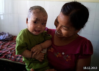ယေန႔ ၂၅.၁၂.၂ဝ၁၃ ရက္ေန႔တြင္ ကေလးငယ္မ်ား၏ က်န္းမာေရးႏွင့္ စားေသာက္မႈစရိတ္ အေျခအေနမ်ားအား ေျမာက္ဥကၠလာပေဆး႐ံုႀကီးသို႔ ထပ္မံသြားေရာက္၍ ၾကည့္႐ႈမိေသာအခါ ကၽြန္ေတာ္ တုိ႔မ်ားစြာ အားတက္ေက်နပ္ ပီတိျဖစ္ခဲ့ရျပန္ေတာ့သည္။ ကေလးငယ္မ်ားႏွင့္ မိဘတို႔၏ မ်က္ႏွာမ်ားသည္ ေက်နပ္႐ႊင္လန္း ပီတိျဖစ္ေနၾကသည္ကို ျမင္ေတြ႔ခဲ့ရသည္။ ဘဝေပးကုသိုလ္ကံေၾကာင့္ လူ႔ေလာကထဲသို႔ ေရာက္႐ိွခဲ့ေသာ္ျငားလည္း ဘဝေပး အကုသိုလ္ကံေၾကာင့္ လူ႔ေလာကထဲတြင္ ရပ္တည္ေနထိုင္ႏိုင္ရန္ အ တြက္၊ လူ႔ပတ္ဝန္းက်င္အတြင္း မ်က္ႏွာျပ၍ ရဲရဲတင္းတင္း ႐ွာေဖြစားေသာက္ ပညာသင္ၾကားမႈမ်ား မျပဳ လုပ္ႏိုင္႐ွာၾကေသာ ကေလးငယ္ေမာင္ႏွမႏွစ္ဦးတို႔သည္ လူ႔ပတ္ဝန္းက်င္၊ လူ႔အသိုင္းအဝိုင္းၾကား အမ်ား သူငါ ကေလးငယ္မ်ားကဲ့သို႔ ရပ္တည္ေနထိုင္ျခင္း၊ ေဆာ့ကစားျခင္းႏွင့္ ပညာသင္ၾကားႏိုင္ျခင္းတုိ႔ ဆႏၵ ျပည့္ဝခဲ့ၿပီျဖစ္သည္။ ကေလးငယ္မ်ား၏ မ်က္ႏွာႏွင့္ ခႏၶာကိုယ္တို႔တြင္ ခံစားေနရေသာ အေရျပားေရာဂါ ေဝဒနာဆိုးမ်ား သက္သာေပ်ာက္ကင္းလု နီးပါးျဖစ္ေနၿပီျဖစ္သည္။ ထိုကဲ့သို႔ ေဝဒနာဆိုးမ်ား ေပ်ာက္ကင္း ႏိုင္ေရးအတြက္ က႐ုဏာ၊ ေစတနာ၊ ေမတၱာတို႔ျဖင့္ ကုသေပးခဲ့ေသာ အေရျပားဆရာဝန္ ေဒါက္တာ ျမတ္စႏၵာေက်ာ္ အားလည္း အထူးေက်းဇူးတင္မိပါသည္။ သူတို႔၏ ေရာဂါေဝဒနာမ်ား လံုးဝေပ်ာက္ကင္း သြားသည္အထိ ကၽြန္ေတာ္တို႔အေနျဖင့္ ဆက္လက္ကူညီ ကုသေပးရဦးမည္ျဖစ္သည္။ ကေလးငယ္မ်ား၏ မ်က္ႏွာအမူအရာမ်ားသည္ ယခင္ေဝဒနာခံစားေနရေသာ အခ်ိန္ကာလမ်ားမွ ၫိႇဳးငယ္ေသာ၊ အားငယ္ ေသာ မ်က္ႏွာမ်ိဳး မဟုတ္ေတာ့ေခ်။ သူတို႔၏ မ်က္ႏွာမ်ားသည္ ႐ႊင္လန္းတက္ၾကြစြာျဖင့္ လူ႔ေလာကႀကီးႏွင့္ အေပါင္းအသင္း သူငယ္ခ်င္း အသိုင္းအဝိုင္းမ်ားၾကား ယံုၾကည္ခ်က္ ျပည့္ဝစြာျဖင့္ ေပါင္းသင္းဆက္ဆံ ေဆာ့ကစား ပညာသင္ၾကားႏိုင္ၿပီ ဟူေသာ ယံုၾကည္ခ်က္မ်ားျဖင့္ ျပည့္ႏွက္၍ေနေတာ့သည္။ ကေလးငယ္ မ်ား၏ ယံုၾကည္ခ်က္ျပင္းထန္ေသာ မ်က္ႏွာသြင္ျပင္ေလးမ်ားအား ကၽြန္ေတာ္ျမင္ေတြ႔မိရေသာအခါ သူတုိ႔ ၏စိတ္ထဲမွ ေျပာၾကားလိုက္ေသာ စကားသံေလးမ်ား ကၽြန္ေတာ့္၏ အၾကားအာ႐ံုတြင္ ပဲ့တင္ထပ္လွ်က္ ႐ွိေနေတာ့သည္။