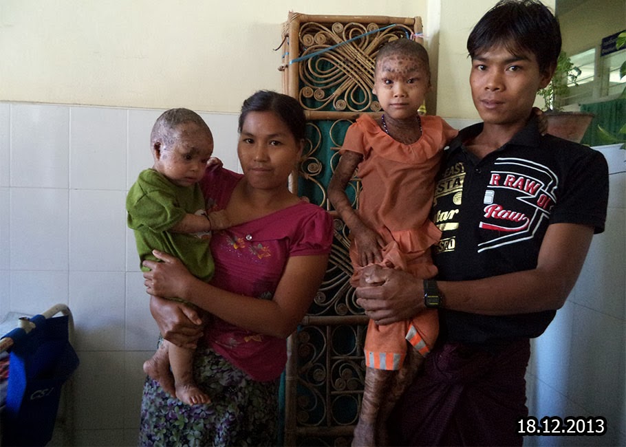 ၁၂.၁၂.၂ဝ၁၃ ရက္ေန႔တြင္ နာေရးကူညီမႈအသင္း(ရန္ကုန္) သုခကုုသုိလ္ျဖစ္ေဆးခန္းသို႔ အေရ ျပားေရာဂါဆိုးခံစားေနရေသာ မေကြးတိုင္း၊ ပြင့္ျဖဴၿမိဳ႕နယ္၊ မလႊကုန္းေက်း႐ြာေန ကိုတင္မိုးႏိုင္ + မစန္း စန္းေအး တို႔၏ သမီးငယ္ မခင္ေမဦး (၆) ႏွစ္၊ သားငယ္ ေမာင္ဟိန္းမင္းႏိုင္ (၁) ႏွစ္ ေမာင္ႏွမႏွစ္ဦးတို႔ သည္