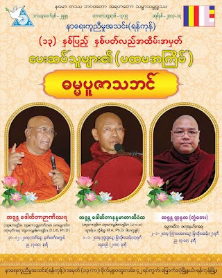 အလွဴအားလံုးတြင္ အျမတ္ဆံုးျဖစ္ပါ၍ နာေရးကူညီမႈအသင္း (ရန္ကုန္) ၏ (၁၃) ႏွစ္ျပည့္ အထိမ္း အမွတ္အျဖစ္ အမ်ားျပည္သူအေပါင္းတို႔အား ျမင့္ျမတ္ေသာ တရားအလွဴ ေပးလွဴလိုပါသျဖင့္ တရားေတာ္ နာၾကြေရာက္ၾကပါရန္ နိဗၺာန္အက်ိဳးေမွ်ာ္၍ ႐ိုေသေလးစားစြာ ဖိတ္ၾကားအပ္ပါ သည္။