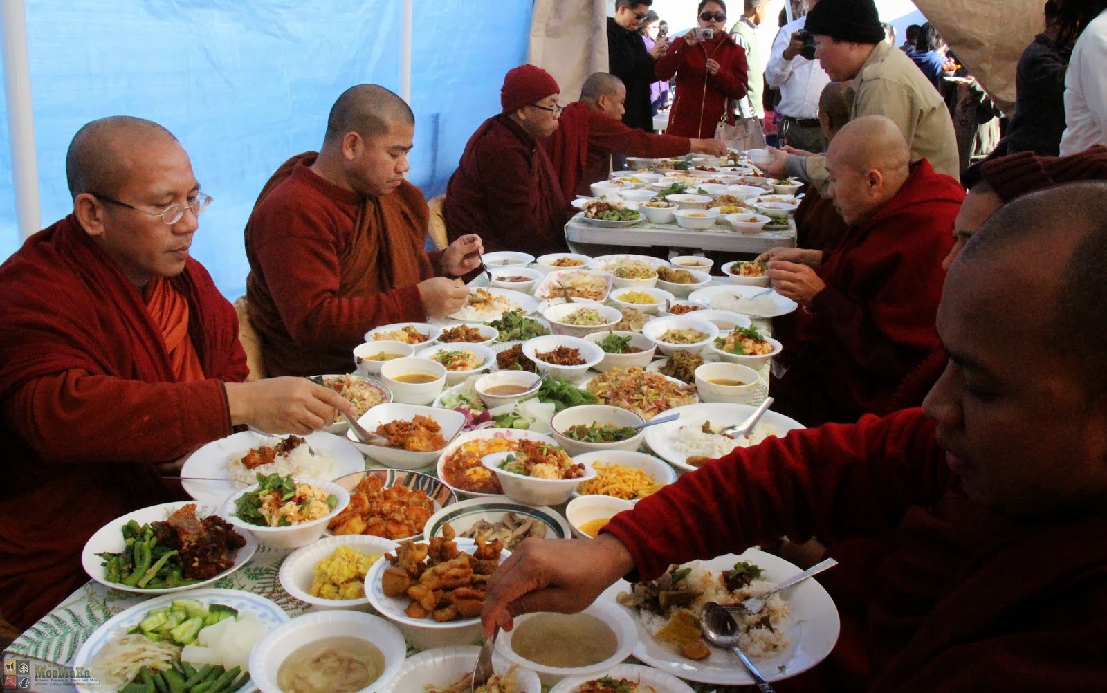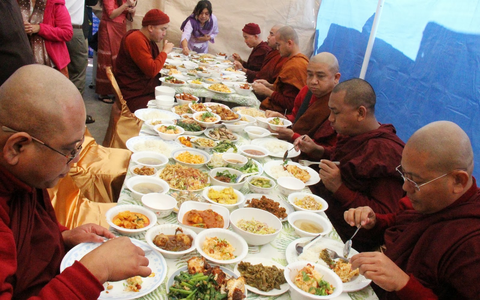 နံနက္ (၈း ၀၀)နာရီတြင္ သိမ္သမုတ္၍ နံနက္ (၉း ၀၀)နာရီတြင္ ေထရ၀ါဒဗုဒၶဘာသာ ေစတနာရွင္၊ အလွဴရွင္မ်ားမွ သံဃာေတာ္မ်ားအား သိမ္ဆင္းေလာင္းလွဴဒါန္းျခင္း၊ နံနက္ (၁၁း၀၀)နာရီတြင္ သံဃာေတာ္မ်ားအား ဆြမ္းဟင္းမ်ား ဆက္ကပ္လွဴဒါန္းျခင္းမ်ားကုိ က်င္းပျပဳလုပ္ခဲ့ၾကပါသည္။