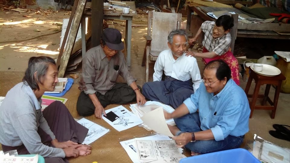 အခမ္းအနားအတြက္ ျပင္ဆင္ေနတဲ့ ကာတြန္းဆရာႀကီး ေရႊမင္းသားႏွင့္ ကာတြန္းဆရာမ်ား