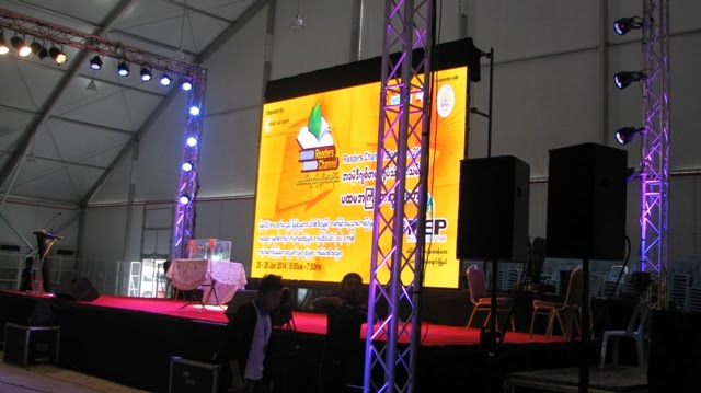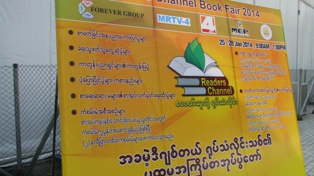 ရန္ကုန္ျမိဳ့ စမ္းေခ်ာင္း၊ ရွင္ေစာပုလမ္း၊ MEP (Myanmar Event Park) မွာ ဇန္န၀ါရီ ၂၅ ကေန ၂၇ အထိ က်င္းပခဲ့တဲ့ Readers Channel Book Fair 2014 မွာ စာအုပ္ထုတ္ေ၀သူမ်ား၊ စာအုပ္ဆိုင္မ်ားက