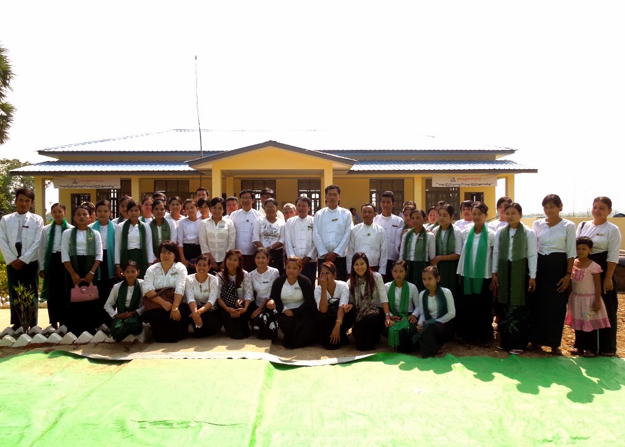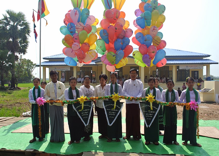 အဆိုပါ နာေရးကူညီမႈအသင္း(ရန္ကုန္)မွ အမ်ားျပည္သူမ်ား လွဴဒါန္းထားေသာ ေငြေၾကးတို႔ျဖင့္ ေဆာက္လုပ္လွဴဒါန္းခဲ့ေသာ ေပ ၃ဝ x ၆ဝ ရွိ RC အေဆာက္အဦးႏွင့္ ေရတံုကင္ပါ ေသာက္ေရအုတ္ကန္ တို႔အား တန္ဖိုးေငြ ၃၆၉၅ဝဝဝဝိ/- (သံုးရာေျခာက္ဆယ့္ငါးသိန္းကိုးေသာင္းငါးေထာင္) ကုန္က်ခံ၍ ေဆာက္လုပ္ေပးခဲ့ၿပီး အေဆာက္အဦးအား ၂၈-၁-၂ဝ၁၄ ရက္ေန႔တြင္ ေက်ာင္းေဆာင္သစ္လႊဲေျပာင္းေပး အပ္ျခင္းအခမ္းအနားအား က်င္းပျပဳလုပ္ခဲ့ရာတြင္ နာေရးကူညီမႈအသင္း(ရန္ကုန္) ဒု-ဥကၠဌ ေဒၚသန္းျမင့္ ေအာင္ႏွင့္ အတြင္းေရးမွဴး ေဒၚျမင့္ျမင့္ခင္ေဖ (ခ) ေဒၚေရႊဇီးကြက္၊ အလုပ္အမႈေဆာင္မ်ား၊ အသင္းသူ/သား မ်ား၊ က်ိဳက္လတ္ၿမိဳ႕နယ္ပညာေရးမွဴးႏွင့္ ဆရာ/ဆရာမမ်ား၊ ရပ္မိ/ဖမ်ား၊ ေက်ာင္းသား/သူမ်ား၊ အလွဴရွင္ မ်ား တက္ေရာက္ခဲ့ၾကသည္။ ေက်ာင္းေဆာင္သစ္လႊဲေျပာင္းေပးအပ္ျခင္း အခမ္းအနားအား ဒု-ဥကၠဌ ေဒၚ သန္းျမင့္ေအာင္ႏွင့္ အတြင္းေရးမွဴး ေဒၚျမင့္ျမင့္ခင္ေဖ (ခ) ေဒၚေရႊဇီးကြက္၊ ၿမိဳ႕နယ္ပညာေရးမွဴးႏွင့္ ေက်ာင္းအုပ္ ဆရာမႀကီးတို႔မွ ဖဲႀကိဳးျဖတ္၍ဖြင့္လွစ္ေပးခဲ့ၿပီး ဒု-ဥကၠဌ ေဒၚသန္းျမင့္ေအာင္မွ ေက်ာင္း ေဆာင္သစ္လွဴဒါန္းရျခင္းႏွင့္ ပတ္သက္၍ ႐ွင္းလင္းေျပာၾကားေပးခဲ့ၿပီး ၿမိဳ႕နယ္ပညာေရးမွဴးႏွင့္ ေက်ာင္း အုပ္ဆရာမႀကီး၊ ေက်ာင္းအက်ိဳးေတာ္ေဆာင္တို႔မွအသီးသီး ေက်းဇူးတင္စကား ျပန္လည္ ေျပာၾကားေပးခဲ့ သည္။ ေက်ာင္းေဆာင္သစ္ႏွင့္ပတ္သက္ေသာ စာရြက္စာတမ္းမ်ားအား ပညာေရးမွဴးႏွင့္ ေက်ာင္းအုပ္ ဆရာမႀကီးထံသို႔ လႊဲေျပာင္းေပးအပ္ခဲ့ၿပီး ေက်ာင္းသား/သူ (၁ဝဝ) ေက်ာ္တို႔အတြက္ ေက်ာင္းဝတ္စံုမ်ား လွဴဒါန္းေပးခဲ့ေသာ အလွဴရွင္ ဦးခင္ယုေမာင္ + ေဒၚသီတာေအး (မိသားစု)မွ နာေရးကူညီမႈအသင္း (ရန္ ကုန္)သို႔ အမွတ္တရ ေက်ာက္စီပန္းခ်ီကားအား ျပန္လည္ေပးအပ္ခဲ့သည္။ ထို႔ေနာက္ေက်ာင္း ေဆာင္သစ္ ေရွ႕တြင္ ေက်ာင္းသား/သူမ်ား၊ ဆရာ/မမ်ားႏွင့္ အမွတ္တရမွတ္တမ္းဓါတ္ပံုမ်ား ႐ိုက္ကူးခဲ့ၾကသည္။