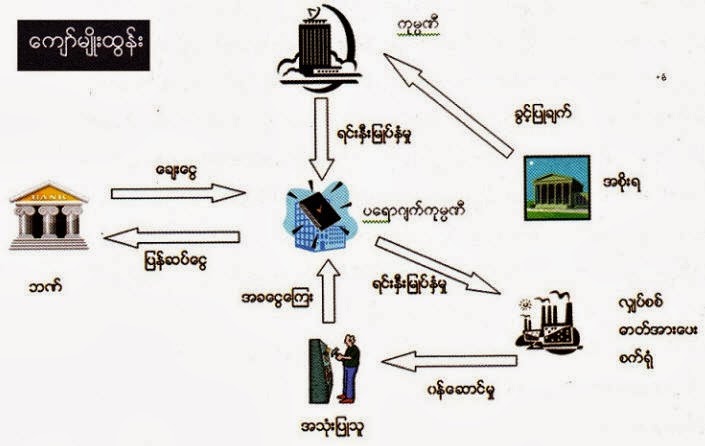 အခု ျမန္မာျပည္မွာ ဗဟိုအစိုးရနဲ႕စာခ်ဳပ္ျပီး ရင္းႏွီးျမွတ္ႏွံၾကတဲ့အထဲ အထင္ရွားဆံုးကေတာ့ ဆက္သြယ္ေရး ကုမၸဏီ Telenor & Ooredoo ႏွစ္ခုျဖစ္ပါတယ္။ဲ ျပည္သူလူထုဆီက မိုဘိုင္းဖုန္းနဲ႕ အျမတ္ထုတ္မဲ့ ကုမၸဏီ ဆိုေပမဲ့၊ ျမန္မာ့ဆက္သြယ္ေရးရဲ႕၊ ခရိုနီမ်ားနဲ႕ေပါင္း အျမတ္ထုတ္ျပီး၊ ႏိုင္ငံေတာ္လဲ အခြန္ေငြမရတာထက္ ပိုျပီး ပြင့္လင္းျမင္သာလာပါတယ္။ လွ်ပ္စစ္လုပ္ငန္းကိုလည္း IPP ပုဂၢလိကကို ၁၀၀% ေပးျပီး အျပိဳင္ဆိုင္ လုပ္ခိုင္းရင္ အနည္းဆံုး ဗီယက္နမ္၊ ထိုင္း အဆင့္ေတာ့ လွ်ပ္စစ္ေစ်းခ်ိဳလာမွာ ျဖစ္ပါတယ္။ မီးထြန္းဖို႕လွ်ပ္စစ္ကိုေတာ့ ေစ်းႏႈန္းခ်ိဳရပါမယ္။ အဲယားကြန္းလွ်ပ္စစ္ကိုေတာ့ ေစ်းႏႈန္းၾကီးေပးရပါတယ္။ ကမၻာ့လွ်ပ္စစ္ေစ်းအၾကီးဆံုး စင္ကာပူမွာေတာင္ ဒီနည္းနဲ႕ လွ်ပ္စစ္ေငြေတာင္းခံပါတယ္။