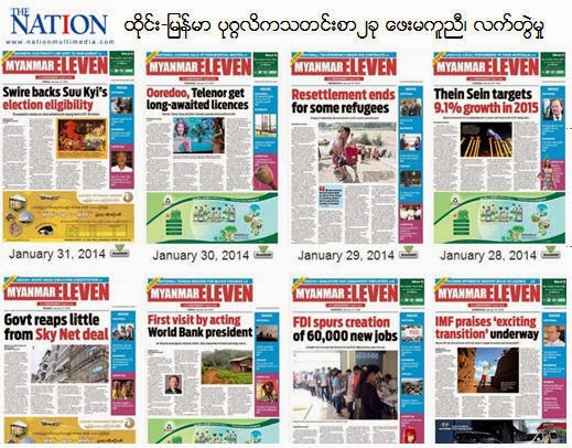 အခု Eleven Media အဂၤလိပ္သတင္းစာ ထြက္လာျပီး၊ The Nation အကူအညီနဲ႕ ေဒါင္းလုပ္ဖတ္ရႈရပါျပီ။ ျပည္ပေရာက္ ဗိုလ္လိုမွ ပိုအားရတဲ့ ျမန္မာစာဖတ္ပရိတ္သတ္နဲ႕ႏိုင္ငံျခားသားမ်ားအတြက္လို႕ ဆိုပါတယ္။