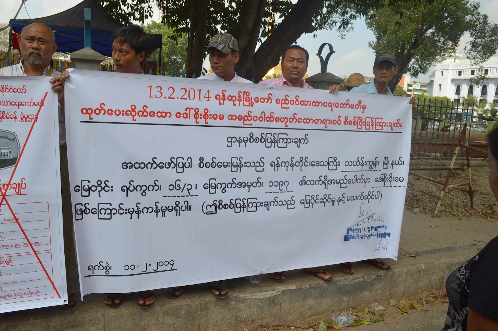 သမီးကေလးေက်းရြာ ဖ်က္ဆီးခံရသည့္အတြက္ ကိုထင္ေက်ာ္ဦးေဆာင္ေသာ ‘ဒီမိုကေရစီ စဥ္ဆက္မျပတ္ လွဳပ္ရွားမွဳအဖြဲ႔’ မွ ၂၀၁၄ ခုႏွစ္ ေဖေဖာ္၀ါရီလ ၁၈ရက္ အဂၤါေန႔ နံနက္ ၁၀နာရီတြင္ မဟာဗႏၶဳလပန္းျခံလမ္းတြင္