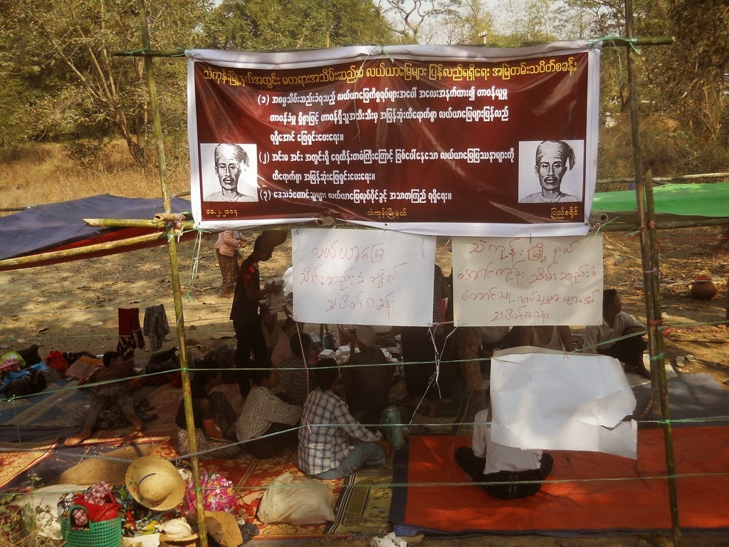 သဲကုန္းၿမိဳ႕နယ္ အုတ္ဖုိ ေက်းရြာအုပ္စုအတြင္းရွိ ေအာင္ကုန္း၊ သင္ေတာ၊ ကစြန္း အင္း၊ ရင္းတုိက္တန္း၊ ေႏွာကုန္း၊ ေဆာက္ၿခဳံႀကီးေက်းရြာ ၆ ရြာမွ လယ္သိမ္းခံရသည့္ ေတာင္သူမ်ားက ၎တို႔လယ္ယာေျမမ်ား ျပန္လည္ ရရွိရန္ ဥပေဒအရ အႀကိမ္ႀကိမ္ ႀကိဳးစားခဲ့ေသာ္လည္း ထူးျခားမႈ မရွိသည့္အတြက္ သဲကုန္းၿမိဳ႕၏ ၿမိဳ႕ေတာ္ ခန္းမအနီးမွာ သပိတ္စခန္းကို (၁၁-၂-၂၀၁၄)ရက္ေန႔မွာဖြင့္ျပီး ျငိမ္းခ်မ္းစြာေတာင္းဆိုျခင္း ျဖစ္တယ္။ ညေန(၆)နာရီမွာ သပိတ္ စခန္းကို ဦးေဆာင္သူ ၄ ဦးအား သဲကုန္း ၿမိဳ႕နယ္ ရဲစခန္းတြင္ ပုဒ္မ ၁၈ ျဖင့္ အေရးယူထားျပီး (၁၄-၂-၂၀၁၄)ရက္ေန႔၊ မနက္(၇)တြင္ သပိတ္ စခန္းကို အၾကမ္းဖက္ျဖိဳခဲြခဲ့တယ္။