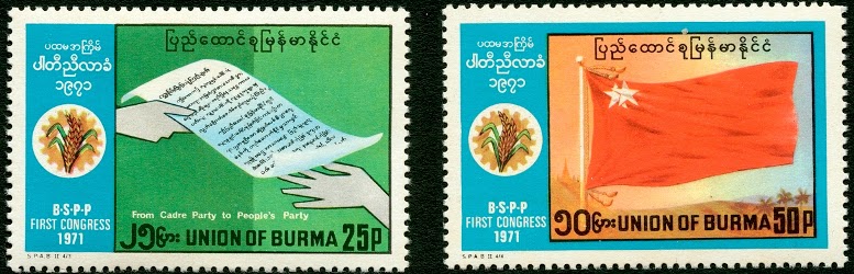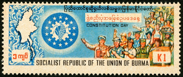 ဒီေအာက္က တံဆိပ္ေခါင္း (၃) မ်ုဳိးကေတာ့ ဖြဲ႕စည္းပုံအေျခခံဥပေဒေန႔ အထိမ္းအမွတ္ အျဖစ္ထုတ္ေဝတဲ့ တံဆိပ္ေခါင္းေတြဘဲ။ ၁၉၇၆ ဇႏၷဝါရီ (၃)ရက္ေန႔မွာ ထုတ္ခဲ့တာ။
