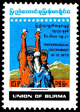 ၁၉၇၃ ဒီဇင္ဘာ ၁၅ ရက္ေန႔ထုတ္ ျပည္လုံးကြ်တ္ဆႏၵခံယူပဲြ အထိမ္းအမွတ္တံဆိပ္ေခါင္း (၃)မ်ဳိး