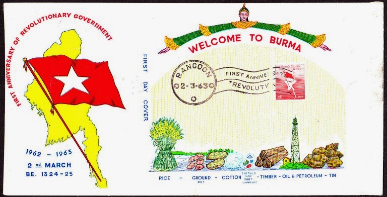 ၁၉၆၃ -မတ္လ(၂)ရက္ေန႔ထုတ္ တံဆိပ္ေခါင္းႏွင့္ FIRST DAY COVER