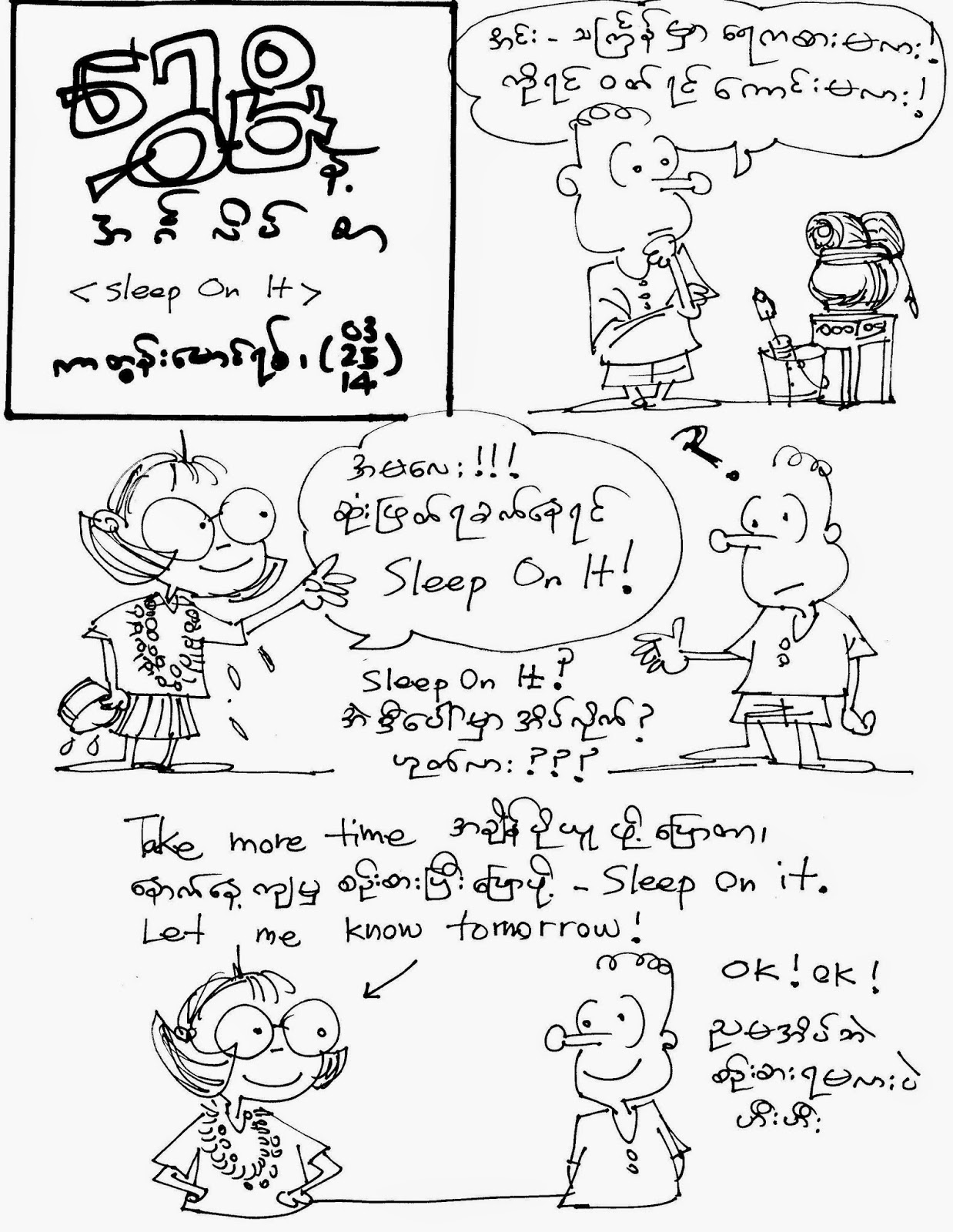 ကာတြန္းေမာင္ရစ္ – ေရႊမိနဲ႔ အဂၤလိပ္စာ၊ (Sleep on it)