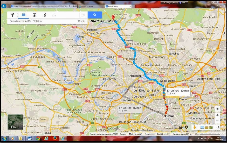 Auvers-sur-Oise သို႔ ေမာ္ေတာ္ကားလမ္း ၃၂ ဒႆမ ၈ ကီလိုမီတာ (Photo Google)