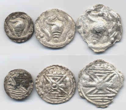 ေလးရာစုေလာက္က ခတ္ႏွိပ္သည္ဟု မွန္းဆရေသာ ဒဂၤါးမ်ားတြင္ စာထိုးမထားေခ်။ သို႔ရာတြင္ ယင္းတို႔၌ မဂၤလာႏွင့္ ျပည့္စုံေသာ သရုပ္ေဖာ္ပုံမ်ား ပါ႐ွိသည္။ ယင္းပုံမ်ားသည္ ဘုရင္စနစ္ႏွင့္ ေလ်ာက္ပတ္ၿပီးလွ်င္ တုိင္းျပည္ဝေျပာသာယာေရးကို ရည္ညႊန္းေသာပုံမ်ားပင္ ျဖစ္သည္။ ယင္းဒဂၤါးမ်ားမွာ ေငြဒဂၤါးမ်ားျဖစ္ၿပီး အႀကီးအေသး ႏွစ္မ်ိဳးစလုံး ေတြ႔ရသည္။