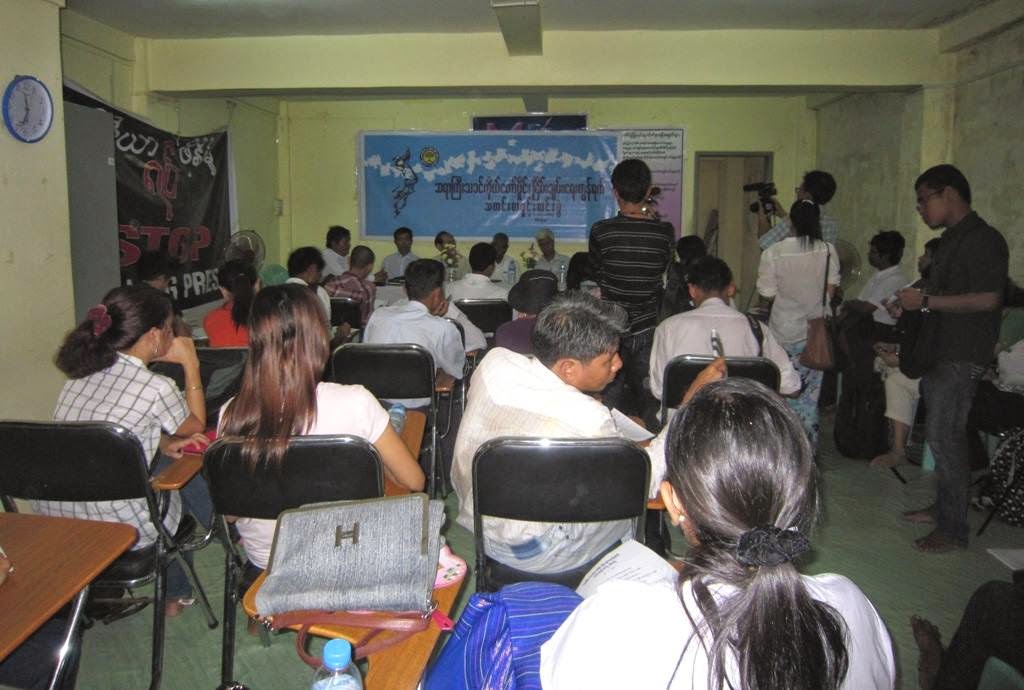 ဆရာႀကီးသခင္ကိုယ္ေတာ္မိႈင္း ၿငိမ္းခ်မ္းေရးကြန္ရက္ သတင္းစာရွင္းလင္းပြဲကို ၂၉-၄-၁၄ ေန႔ နံနက္ ၁၀း၃၀ နာ၇ီမွ ၁၂း၃၀ နာရီအထိ ေက်ာက္တံတားၿမိဳ႕နယ္ရွိ ျမန္မာဂ်ာနယ္လစ္ကြန္ရက္ရံုးခန္းတြင္ ျပဳလုပ္ခဲ့ရာ သခင္ကိုယ္ေတာ္မိႈင္း ၁၃၈ ႏွစ္ေျမာက္ေမြးေန႔အခမ္းအနား သေဘာထားထုတ္ျပန္ခ်က္၊ သခင္ကိုယ္ေတာ္မိႈင္း အထိမ္းအမွတ္ ၿငိမ္းခ်မ္းေရးစာေပဆုေပးပြဲ၊ ၂၈-၇-၁၄ မွ ၂-၈-၁၄ အထိ ေလာကနတ္ပန္းခ်ီျပခန္းမွာ ျပဳလုပ္မယ့္ သခင္ကိုယ္ေတာ္မိႈင္းအမွတ္တရ ပန္းခ်ီျပပြဲအေၾကာင္းမ်ားႏွင့္ ပတ္သက္၍ တာ၀န္ရွိသူမ်ားက ရွင္းလင္းတင္ျပခဲ့ၿပီး စာနယ္ဇင္းသမားမ်ားရဲ႕ ေမးခြန္းေတြကို ေျဖၾကားေပးခဲ့ၾကပါတယ္။