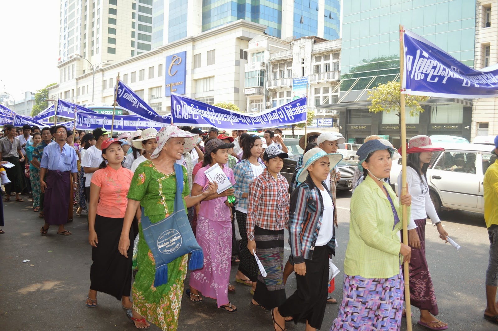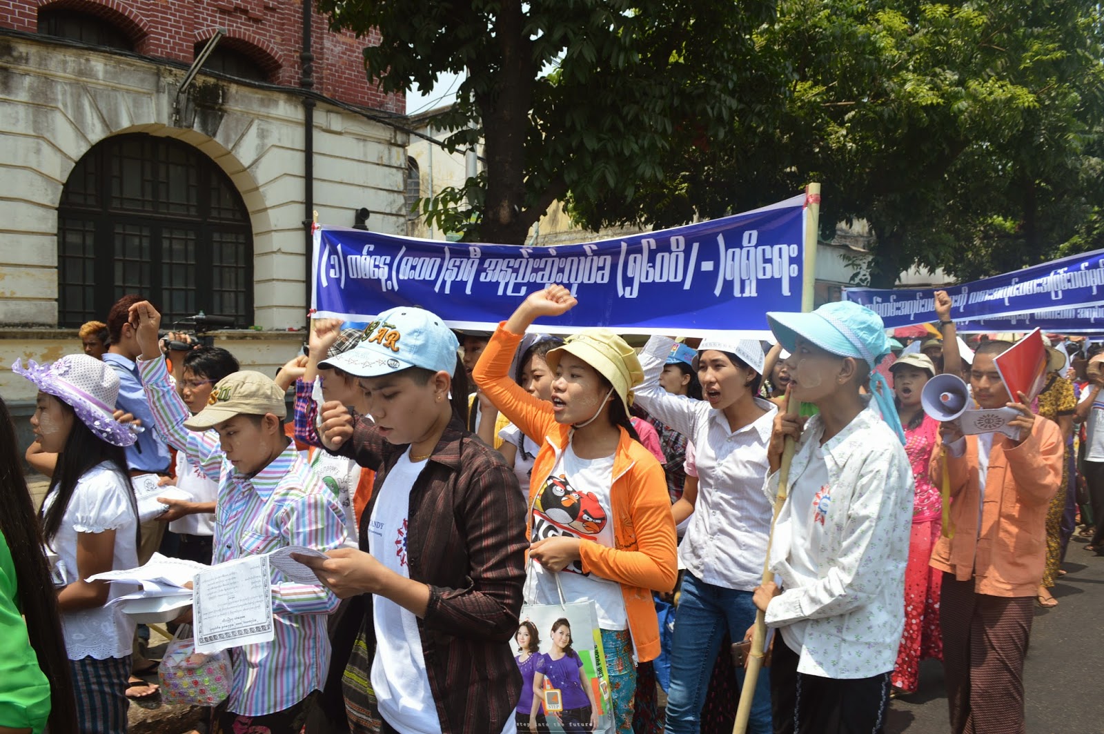 ကြ်န္မက မာစတာစေပါ႕ ဖိနပ္ စက္ရံုကပါ ၊ ကြ်န္မတို႕ စက္ရံုမွာ အလုပ္သမား ရွစ္ရာေလာက္ရိွပါတယ္ ၊ အခုကြ်န္မတို႕ တစ္ေန႕ကို လုပ္ခ တစ္ေထာင္႕နွစ္ရာပဲ ရပါတယ္ ။ ကြ်န္မက အလုပ္သမားအေရးေဆာင္ရြက္ေနတဲ႕ အဖြဲ႕က