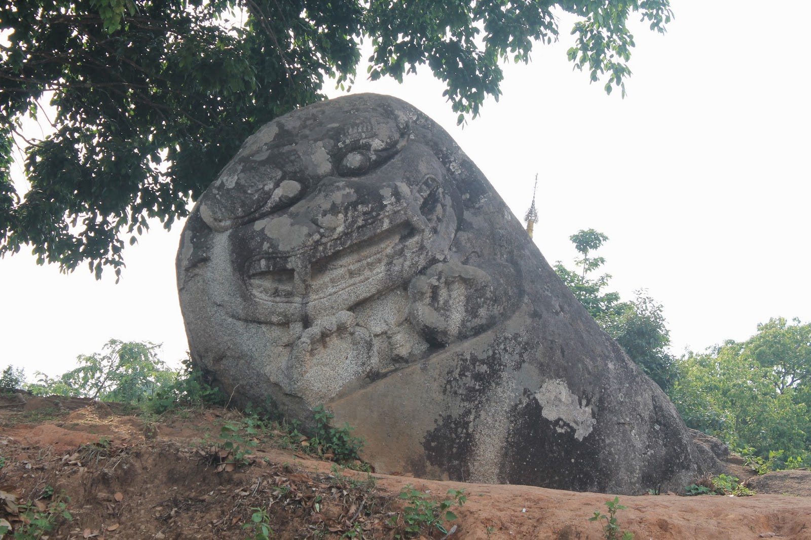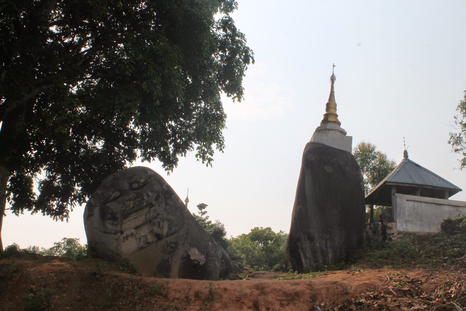 ထားပါေတာ့ဗ်ာ လိုရင္းနဲ႕ဆုိတင္းႀကတာပဲေကာင္းပါတယ္။ ဒီလိုေလ ေမျမိဳ႕နဲ႕မိုးကုတ္အသြား ေတာင္ႀကားလမ္းမတစ္ေနရာ ေရာက္ေတာ့။ ေဒသခံဆရာသမားက ကားရပ္ေပးတယ္ဗ်။ ဓာတ္ပံုရုိက္ႀက ဆုိေတာ့ ဘာပါလိမ့္ေပါဗ်ာ။ က်ေနာ္ကကားေနာက္ဖံုးထဲ၀င္စီးတာ ဆိုေတာ့ရုတ္တရက္မျမင္ရဘူးဗ်။ ေနာက္ဖံုး အသာလွပ္၊ ဟိုမွာႀကည့္ဆုိေတာ့မွ ေစတီတစ္ဆူေတြ႕တယ္ဗ်။ က်ေနာ္ကလည္းဘုရားတရားသမား မဟုတ္လား၊ ေဒသခံကႀကမ္းတယ္ ေစတီျပတာမဟုတ္ဘူး ဟိုေက်ာက္ရုပ္ႀကီးျပတာဗ် ဆုိေတာ့မွ ေစာင္းေတာင္းေတာင္း လဲက်မတတ္ ေက်ာက္တံုးႀကီးေတြ႕တယ္။ ဘာလုပ္ရမွာလည္းအဲ့ဒါႀကီးဆုိေတာ့။ ဟုိကေက်ာက္တုံး ခင္ဗ်ားက လူတံုးတဲ့။