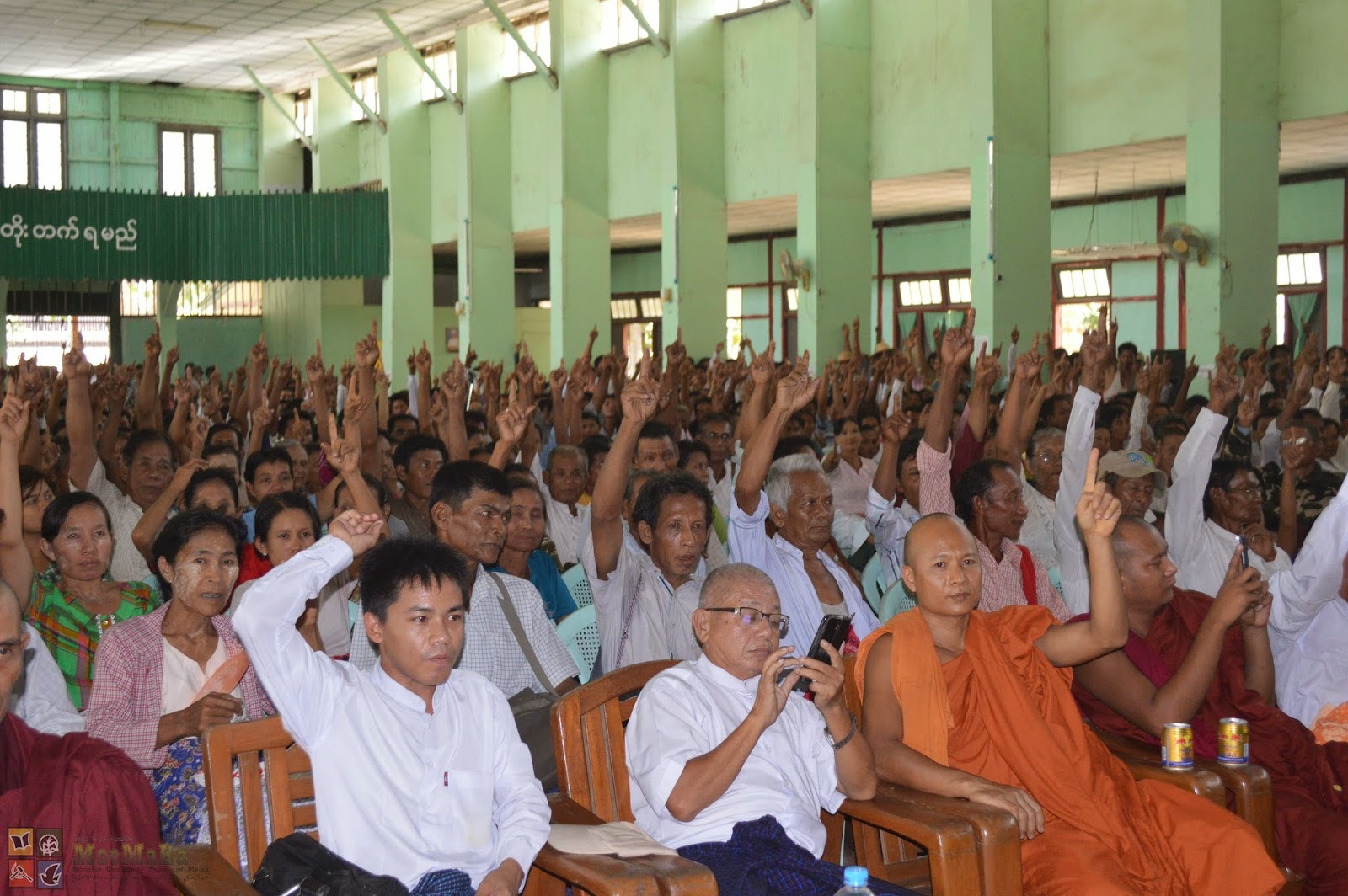 ဧရာဝတီတိုင္း၊ မအူပင္ၿမိဳ႕၊ ေညာင္တုန္းၿမိဳ႕၊ ပန္းတေနာ္ၿမိဳ႕၊ ဓႏုျဖဴၿမိဳ႕၊ ေက်ာင္းကုန္းၿမိဳ႕၊ ေျမာင္းျမၿမိဳ႕၊ လပြတၱာၿမိဳ႕၊ ဝါးခယ္မၿမိဳ႕၊ ဖ်ာပုံၿမိဳ႕၊ က်ဳိက္လက္ၿမိဳ႕၊ ေမာ္လၿမိဳင္ေမာ္ကြ်န္းတုိ႔မွ ေဒသခံေေတာင္သူမ်ားအားလုံးသည္ မတရားသိမ္းဆည္းခံ လယ္ယာေျမျပႆနာ ေျဖရွင္းေရး အစည္းအေဝးကုိ တုိးေရႊဝါခမ္းမတစ္ခုလုံးျပည့္ေအာင္ အားတက္သေရာတက္ေရာက္ခဲ့သည္။