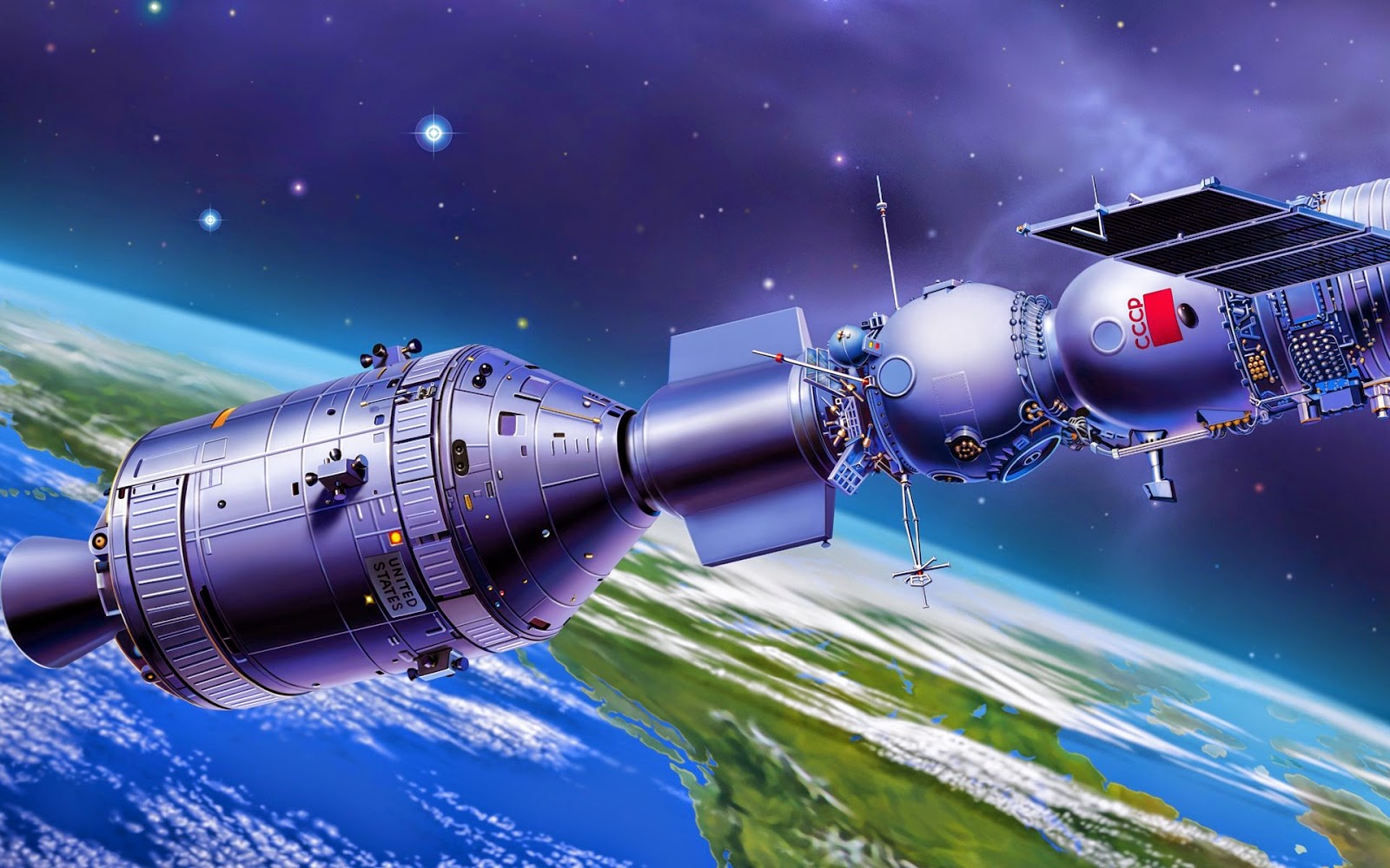ထို႔ေနာက္ ၁၉၇၅ ခုႏွစ္၊ ဇူလိုင္လ ၁၇ ရက္ေန႔မွ ၁၉ ရက္ေန႔အထိ အေမရိကန္ျပည္ေထာင္စုမွ အပိုလို အာကာသယာဥ္ႏွင့္ ဆိုဗီယက္ျပည္ေထာင္စုမွ ဆိုယုဇ္ အာကာသယာဥ္တို႔ ခ်ိတ္ဆက္ပ်ံသန္းခဲ့ကာ ပထမဆုံး အႀကိမ္အျဖစ္ ႏွစ္ႏိုင္ငံ ပူးေပါင္း၍ အာကာသစူးစမ္းမႈမ်ား ျပဳလုပ္ခဲ့ၾကသည္။ လိုက္ပါခဲ့ေသာ ယာဥ္မွဴးမ်ားမွာ အပိုလိုအာကာသယာဥ္မွ ေသာမတ္စ္စတက္ဖို႔ဒ္၊ ဗန္႔စ္ဘရန္႔ႏွင့္ ေဒၚနယ္လ္စေတတြန္ တို႔ ျဖစ္ၾကၿပီး ဆိုယုဇ္ – ၁၉ အာကာသယာဥ္မွ အယ္လက္ဆီလီယိုေနာ့ဗ္ႏွင့္ ဗလာရီကူဗာေဆာ့ဗ္ တိို႔ ျဖစ္ၾကသည္။
