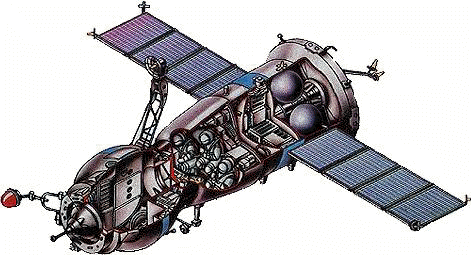 ဆိုဗီယက္ျပည္ေထာင္စုသည္ ယင္းသို႔ ေ႐ွ႕ေျပးစူးစမ္းမႈ အမ်ိဳးမ်ိဳးကို ေအာင္ျမင္စြာ ျပဳလုပ္ၿပီးေသာအခါ ဆာလြတ္ (Salyut-the Obital Scientific Station) ဟု အမည္ေပးထားေသာ ကမၻာပထမဆုံး ကမၻာပတ္ အာကာသစခန္းႀကီးကို ၁၉၇၁ ခုႏွစ္၊ ဧၿပီလ ၁၉ ရက္ေန႔တြင္ ကမၻာပတ္လမ္း ၀န္းအတြင္းသို႔ လႊတ္တင္ခဲ့သည္။ အလ်ား ၆၀ ေပ႐ွိ၍ အေလးခ်ိန္ ၁၇ တန္ခြဲေလးေသာ ထိုဆာလြတ္အာကာသ စခန္းသည္ ကမၻာေျမျပင္မွ အနီးဆုံး ၁၂၄ ဒသမ ၂ မိုင္ႏွင့္ အေ၀းဆုံး ၁၃၇ ဒသမ ၉ မိုင္တြင္း ႐ိွေသာ ကမၻာပတ္လမ္း ၀န္းအတြင္း၌ အီေကြတာသို႔ ၅၀ ဒသမ ၆ ဒီဂရီ တိမ္းေစာင္းလ်က္ ၈၈ ဒသမ ၅ မိနစ္တြင္ တစ္ႀကိမ္က် လွည့္ပတ္လ်က္ ႐ွိသည္။ ဆာလြတ္အာကာသစခန္း၏ အတြင္းပိုင္း အက်ယ္အ၀န္းမွ ကုဗေပ ၃၅ဝဝ ႐ွိ၍ ကုဗေပ ၂၁ဝ မွ် ႐ွိေသာ အေမရိကန္ျပည္ေထာင္စု၏ အပိုလိုအာကာသယာဥ္မ်ားထက္ မ်ားစြာ ပို၍ က်ယ္၀န္းေလသည္။ ထို႔ေၾကာင့္ ယာဥ္တြင္း၌ ယာဥ္မွဴးမ်ားအတြက္ စာၾကည့္ခန္းမွစ၍ ခ်က္ျပဳတ္ဖြယ္ရာ အိုးခြက္၊ မီးဖိုႏွင့္ ေရခဲေသတၱာ စေသာ ပစၥည္းပါ႐ွိပါသည္။ ဆာလြတ္အာကာသစခန္း၏ ပုံသ႑ာန္မွာ အ႐ြယ္မတူေသာ က်ည္ေတာက္သ႑ာန္ အစိတ္အပိုင္းမ်ား ဆက္စပ္ထားသကဲ့သို႔ ႐ွိသည္။ ယင္းအစိတ္အပိုင္းမ်ားကို တစ္ခုႏွင္တစ္ခု ေလအလုံပိတ္ ဆက္စပ္ထားသည္။ ထို႔ျပင္ေနေရာင္ျခည္အားသုံး ဘက္ထရီမ်ား ထား႐ွိရာ ေတာင္ပံႏွစ္ခုကိုလည္း အာကာသစခန္း၏ ဦးပိုင္းႏွင့္ ပဲ့ပိုင္းတို႔၌ တပ္ဆင္ထားသည္။ ဆာလြတ္အာကာသစခန္း ပ်ံသန္းမႈကို ဆိုဗီယက္ျပည္ေထာင္စုအတြင္း႐ွိ ေျမျပင္စခန္းမ်ားႏွင့္ အတၱလႏိၱတ္ သမုဒၵရာအတြင္း႐ွိ ေမာ္ဇိုးဗက္စ္ (Morzohvets) ကီ႐ိုစထေရာ့ဗ္ (Kegostrov)၊ အကယ္ဒမီ႐ွင္ဆာဂ်ီကို႐ိုလက္ဗ္ (Academician Sergei Korolev) သေဘၤာမ်ားက ဆက္သြယ္ထိန္းသိမ္းေပးသည္။