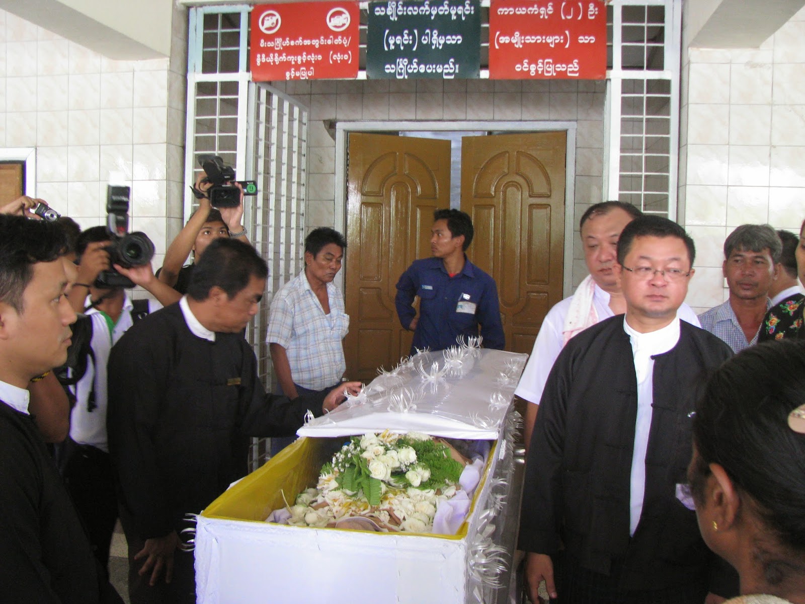 ၅.၆.၂၀၁၄ ၾကာသပေတး နံနက္ ၁၁နာရီတြင္ ေရေဝးသုသာန္သုိ႔ သြားေရာက္ပုိ႔ေဆာင္ မီးသၿဂိဳဟ္ခဲ့သည္။
