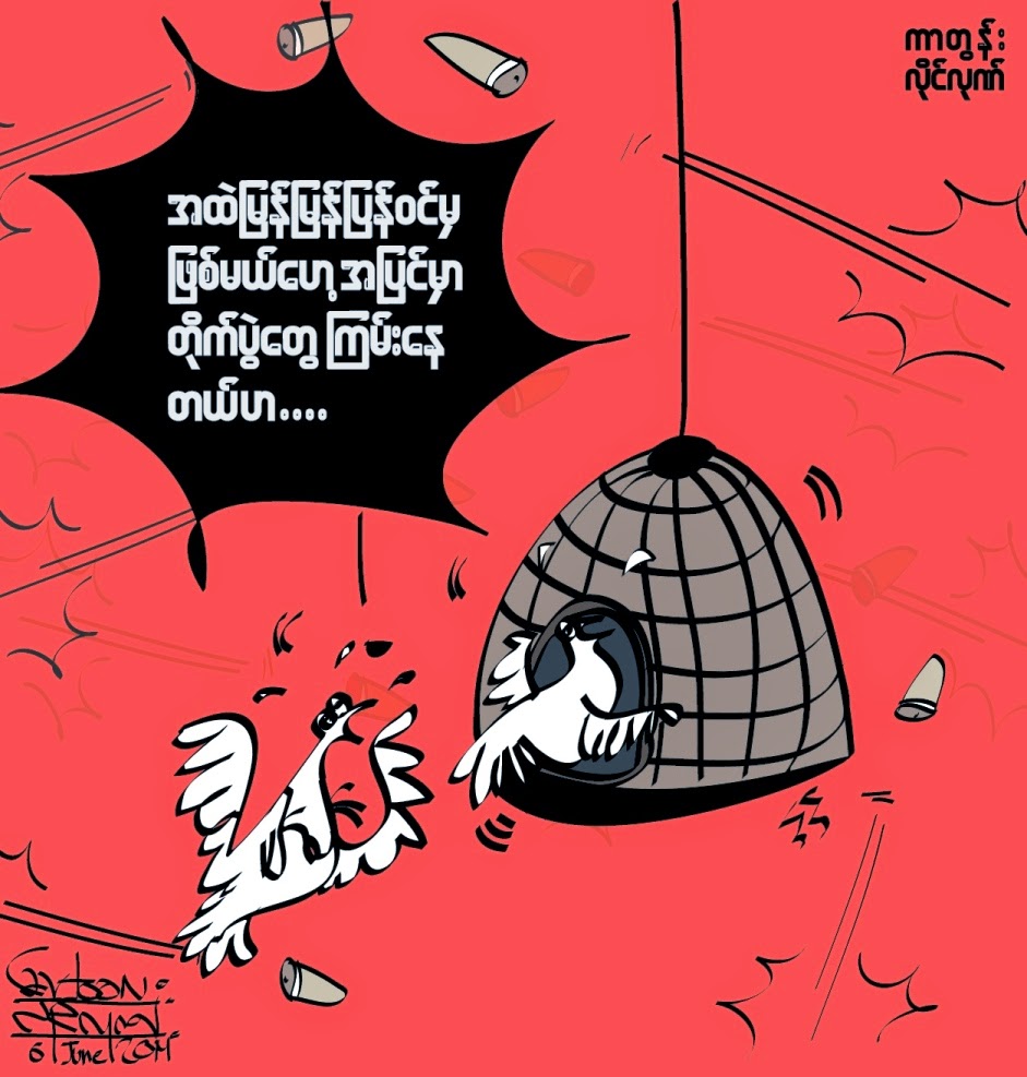 ကာတြန္းလိုင္လုဏ္ – ျငိမ္းခ်မး္ေရးလား … က်ည္ကာ၀တ္ထားရတယ္