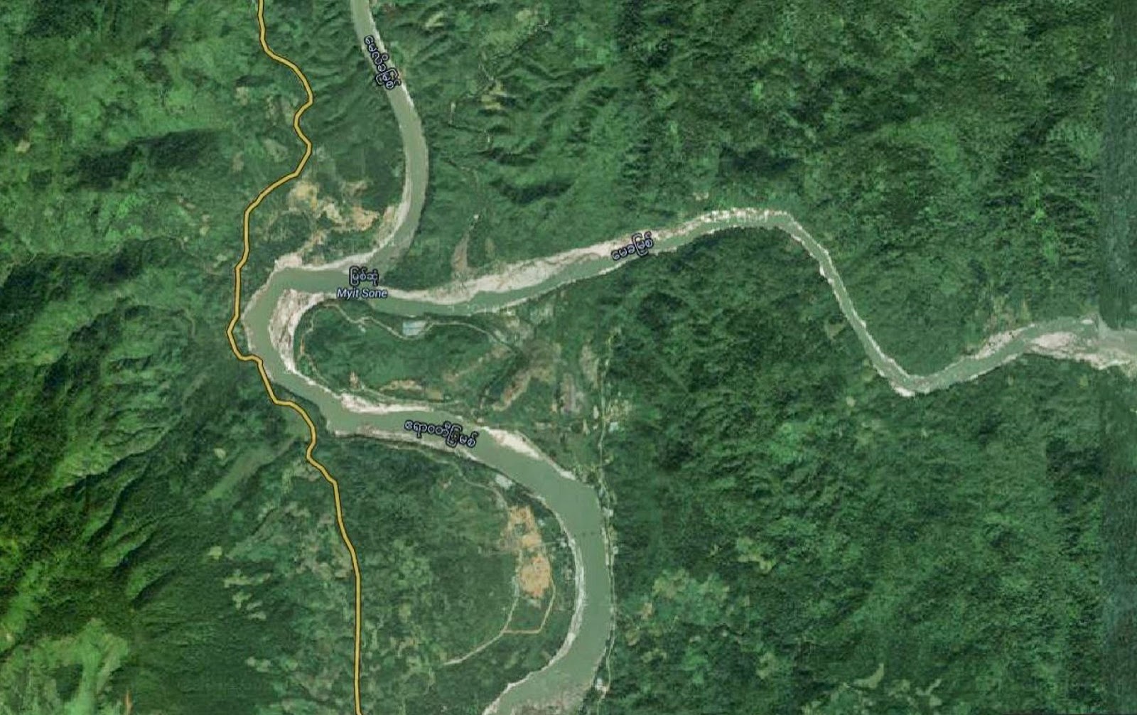 ေမခနဲ႔မလိခ ျမစ္ဆံုကို ဂူဂဲလ္ေျမပံုမွာ ထင္ထင္ရွားရွား ျမင္ရပံု (Photo Google)