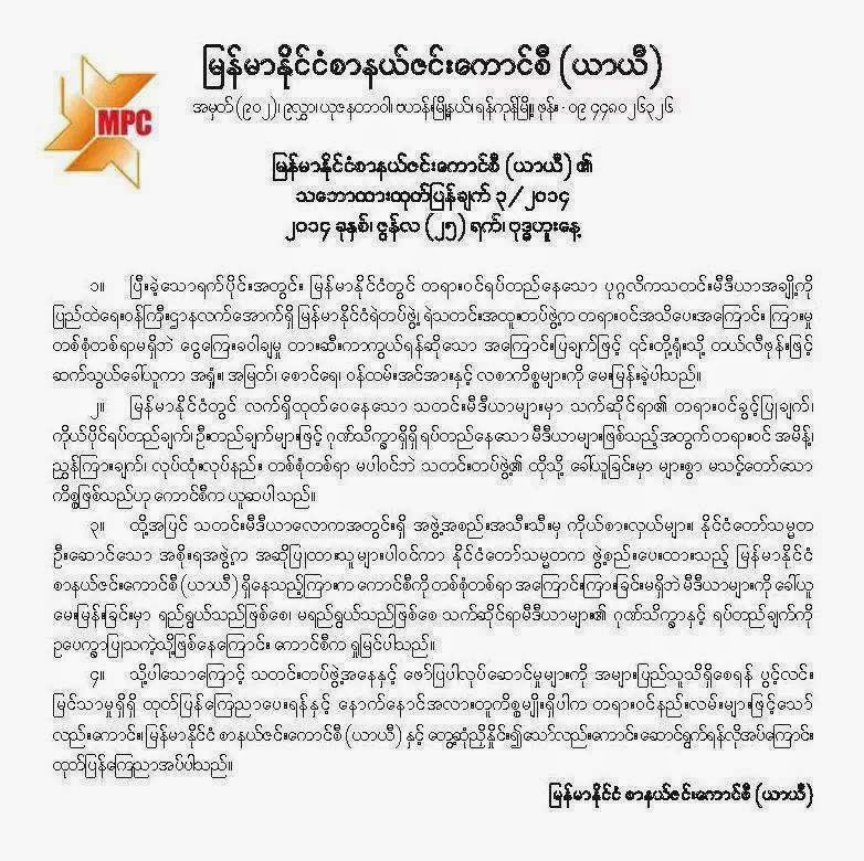 သတင္းတပ္ဖြဲ႕က ေခၚယူေမးျမန္းမႈနဲ႔ပတ္သက္လိုု႔ စာနယ္ဇင္းေကာင္စီရဲ႕ေၾကညာခ်က္