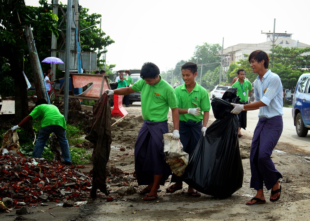 နာေရးကူညီမႈအသင္း(ရန္ကုန္)သည္ ၂ဝ၁၄ ခုႏွစ္၊ ဇြန္လ (၈) ရက္ေန႔ တနဂၤေႏြေန႔မွ စတင္၍ ၄၂ ရပ္ကြက္ႀကီးအား “အမိႈက္ကင္းစင္ဇံု စံျပရပ္ကြက္” အျဖစ္ အေကာင္အထည္ေဖာ္ ေဆာင္႐ြက္လွ်က္႐ွိပါ သည္။ အပတ္စဥ္ တနဂၤေႏြေန႔ နံနက္ (၇းဝဝ) နာရီအခ်ိန္ဆိုရင္ အသင္း႐ံုးခ်ဳပ္၌ အသင္းသား/သူမ်ား၊ ပရဟိတလူငယ္ေမာင္/မယ္မ်ား၊ လူမႈေရးအသင္းအဖြဲ႔မ်ားႏွင့္ သဘာဝပတ္ဝန္းက်င္ စိမ္းလန္းေရးအတြက္ စိတ္အားထက္သန္ၾကသူမ်ား ေရာက္႐ွိလို႔ေနၾကပါၿပီ။ ကမ႓ာေျမကို ထိန္းသိမ္းဖို႔အတြက္ နာေရးကူညီမႈ အသင္း(ရန္ကုန္)သည္ သဘာဝပတ္ဝန္းက်င္ထိန္းသိမ္းေရး လႈပ္႐ွားမႈအျဖစ္ အမိႈက္ေကာက္ျခင္း၊ ေပါင္း ျမက္မ်ား႐ွင္းလင္းျခင္း၊ အမိႈက္မ်ားအား စနစ္တက် စြန္႔ပစ္ႏိုင္ရန္ သတ္မွတ္အမိႈက္ပံုးမ်ား စီစဥ္ေဆာင္႐ြက္ သတ္မွတ္ေနရာမ်ားတြင္ ထား႐ွိေပးျခင္းတို႔ကို ေဆာင္႐ြက္ေပးလွ်က္႐ွိၿပီး ျပည္သူလူထုအမ်ားတို႔ႏွင့္အတူ ပူးေပါင္းပါဝင္ ဆင္ႏႊဲခဲ့ၾကသည္။ ထို႔အျပင္ ႏိုင္ငံဂုဏ္ေဆာင္ အလွမယ္မ်ားျဖစ္ေသာ နန္းခင္ေဇယ်ာ၊ ခင္ဝင့္ဝါ၊ ေမာ္ဒယ္ ထြန္းကိုကို တို႔အျပင္ “သုခအလင္းပညာဒါန”မွ တကၠသိုလ္ဝင္တန္း ေက်ာင္းသား/သူ မ်ားႏွင့္ “ၿမိဳ႕မ” လူမႈကူညီေရးအသင္း (ေမွာ္ဘီ)၊ “မိတ္ေဆြေကာင္း” နာေရးကူညီမႈအသင္း (တ/ဒဂံု)၊ “ပုညကာရီ” နာေရးကူညီမႈအသင္း(မဂၤလာဒံု)၊ နာေရးကူညီမႈအသင္း(ဒလ)၊ “မြန္ျမတ္သူ” လူမႈကူညီေရး အသင္း (မရမ္းကုန္း)၊ “အာဃုသုခ” နာေရးကူညီမႈအသင္း (ေရႊျပည္သာ)၊ (၃၉) လူငယ္မ်ားအဖြဲ႔ (မ/ဒဂံု)၊ “မာဃလုလင္” လူမႈကူညီေရးအသင္း (မ/ဒဂံု)၊ ထ/၁၆ ရပ္ကြက္ ပရဟိတနာေရးကူညီမႈအသင္း (ေရႊျပည္ သာ)၊ “ျဗဟၼဝိဟာရ” အသင္း(အင္းစိန္) တို႔ပါ တတ္ၾကြစြာျဖင့္ လိုက္ပါ၍ စုေပါင္းကုသိုလ္ျပဳခဲ့ၾကသည္။ ထိုသို႔အမိႈက္ေကာက္ ျမက္႐ွင္းရာတြင္ အခက္အခဲမ်ားစြာ ႀကံဳေတြ႔ခဲ့ရျပန္သည္။ ျမက္ရိတ္စက္ျဖင့္ ျမက္ မ်ား႐ွင္းလင္းစဥ္ အသင္းသားမ်ား ကိုေအာင္မ်ိဳးဦး သည္ မ်က္လံုးအား ေက်ာက္ခဲစစင္၍ ထိမွန္ၿပီး အေရးေပၚ ေဆးကုသခဲ့ရသလို လံုၿခံဳေရးဝန္ထမ္း ကိုစည္သူလင္း သည္လည္း ညာေျခသလံုး၌ စည္းကမ္း မဲ့စြာ စြန္႔ပစ္ထားေသာ သံေခ်ာင္းစထိမွန္၍ ေျခသလံုးတြင္းသို႔ စိုက္ဝင္ခဲ့၍ အေရးေပၚ ခြဲစိတ္ကုသမႈအား ျပဳလုပ္ခဲ့ရသည္။ ထိုကဲ့သို႔ အခက္အခဲမ်ားၾကားမွ သဘာဝပတ္ဝန္းက်င္ သန္႔႐ွင္းေရးအား အမ်ားျပည္သူ က်န္းမာေရးအတြက္ ဆက္လက္၍ ကိုယ္က်ိဳးမငဲ့ ေဆာင္႐ြက္ေပးဆပ္ေနၾကသည္။