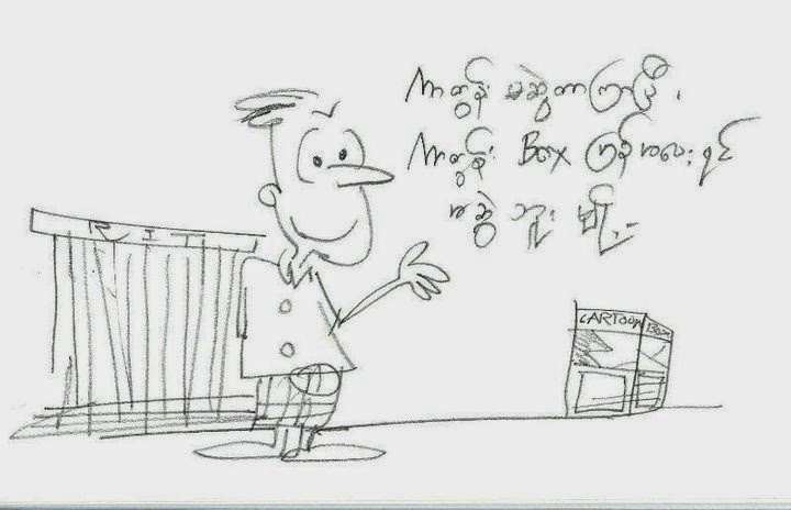 ကာတြန္းေဘာက္စ္က မိတ္ေဆြေတြနဲ႔လည္း ၂၀၁၃ ႏို၀င္ဘာလထဲမွာ ဆုံေတြ႔ခြင့္ရခဲ့ပါေသးတယ္။ ကိုသီလဟတ္၊ အဘညြန္႔၀င္း၊ ရန္ႏိုင္နဲ႔ ဗလတို႔တေတြနဲ႔ စကားလက္ဆုံေျပာျဖစ္ခဲ့ၾကတယ္။ ေက်ာင္းတုန္းက ကာတြန္းဆရာေတြ ပန္းခ်ီဆရာေတြဟာ အင္ဂ်င္နီယာဘြဲ႔ေတြရျပီးေတာ့ ကာတြန္းေတြ မဆြဲၾကေတာ့ဘူး။ အေပ်ာ္တမ္းေတာ့ ဆြဲမွာေပါ့ေလ။ အတည္မဆြဲၾကေတာ့တာ ေျပာတာပါ။ ကိုသီလလတ္န႔ဲ ရန္ႏိုင္က စာေပနဲ႔ စာအုပ္လုပ္ငန္းရွင္၊ ဗလနဲ႔ အဘညြန္႔၀င္းတို႔ကေတာ့ အာခီတက္ၾကီးေတြ ျဖစ္ေနၾကျပီ။ ေတာက္တိုမယ္ရ (TTMY) ဆုိလို႔ ေမာင္ရစ္တေကာင္ပဲ ပါတယ္။ အားငယ္လိုက္တာ။ (ဟဲဟဲ)။