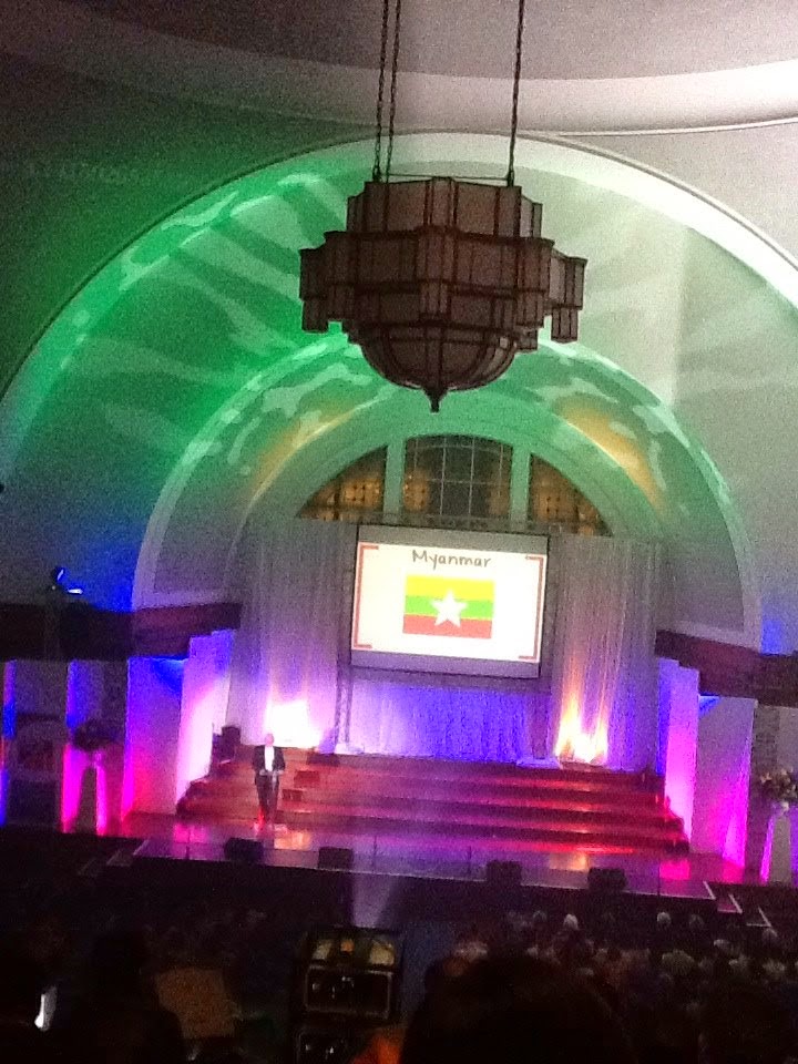 စင္ေပၚတြင္ ဆုေပးမည့္သူ ၂၀ခန္႔ တန္းစီရပ္ေနကာ တႀကိမ္လ်ွင္ ဆုယူမည့္သူ ၂၀ တက္လာပါသည္။ ဆုေပး၊ ႏႈတ္ဆက္၊ ဓာတ္ပံုရိုက္ခံကာ ျပန္ဆင္း၊ ေနာက္တသုတ္တက္ ၊ ခဏေလးႏွင့္ၿပီးသြားပါသည္။ ေနာက္ဆံုးအစီအစဥ္မွာ ၿပိဳင္ပဲြရလဒ္မ်ားအရ အထူးခ်ြန္ဆံုးေက်ာင္းသားဆု ေပးအပ္ျခင္းျဖစ္ပါသည္။ ယခုႏွစ္အတြက္ Australia၊ Chiana ႏွင့္ Taiwan မွေက်ာင္းသား သံုးဦးရရိွသြားပါသည္။ Australia မွေက်ာင္းသားမွာ ယခင္ႏွစ္က Columbia မွာလဲ ထူးခ်ြန္ဆုရထားသျဖင့္ ႏွစ္ႀကိမ္ဆက္ ဆုရသူျဖစ္သြားပါသည္။ သံုးဦးစလံုးမွာ ၄၂မွတ္အျပည့္ရသူမ်ားျဖစ္ပါသည္။ ထိုအတူ ပု စၧာတပုဒ္တြင္ ၇မွတ္ အျပည့္ရသူမ်ားကိုလဲ ဂုဏ္ျပဳလက္မွတ္ေပးအပ္ပါသည္။