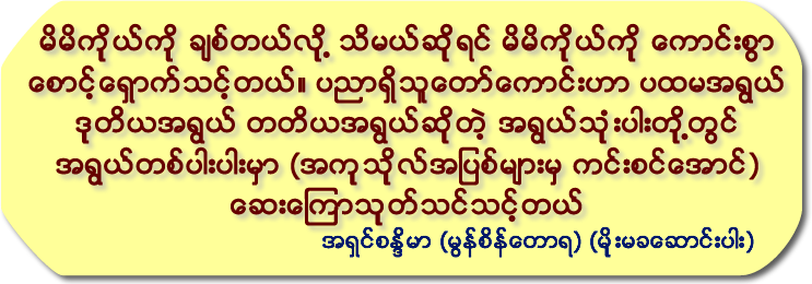 အတၱာနံ ေစ ပိယံ ဇညာ၊ ရေကၡယ် နံ သုုရကၡိတံ။ တိဏၰံ အညတရံ ယာမံ၊ ပဋိဇေဂၢယ် ပ႑ိေတာ။
