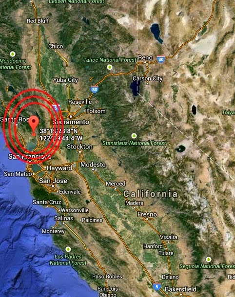 ၾသဂုတ္လ ၂၄၊ နံနက္လင္းအားၾကီး ၃ နာရီ ၂၀ မိနစ္ခန္႔က ကယ္လီဖိုးနီးယားျပည္နယ္၊ ဆန္ဖရန္ေဘးဧရိယာႏွင့္ မိုင္ ၃၀ခန္႔အကြာ နာပါျမိဳ့ကို ဗဟုိျပဳျပီး အင္အား ၆ အဆင့္ရွိ ေျမငလ်င္ လႈပ္ခဲ့သည္ဟု သိရသည္။ နာပါျမိဳ့တြင္းမွာ ထိခိုက္မႈရွိျပီး ပတ္၀န္းက်င္ေဒသရွိ အိမ္ ၆၀၀ ခန္႔ ေရျပတ္၊ ေနအိမ္ ၁ေသာင္းေက်ာ္ မီးႏွင့္ ဓာတ္ေငြ႔ျပတ္ေတာက္လ်က္ ရွိသည္။ ၂၅ ႏွစ္အတြင္း အားအျပင္းဆုံး ငလ်င္ဟု ဆိုသည္။ ထိုေဒသအတြင္း အျပင္းဆုံးမွာ အဆင့္ ၇ ႏွင့္ ဆန္ဖရန္ေဘးဧရိယာတြင္ ၁၉၈၉ ခုႏွစ္က လႈပ္ခဲ့သည္။ နာပါျမိဳ့သည္ ေတာင္ၾကားေဒသတခုျဖစ္ျပီး စပ်စ္၀ိုင္စိုက္ခင္းမ်ားျဖင့္ ထင္ရွားသည္။ အဓိကလုပ္ငန္းမွာ ၀ိုင္အရက္ထုတ္လုပ္ျခင္း ျဖစ္သည္။