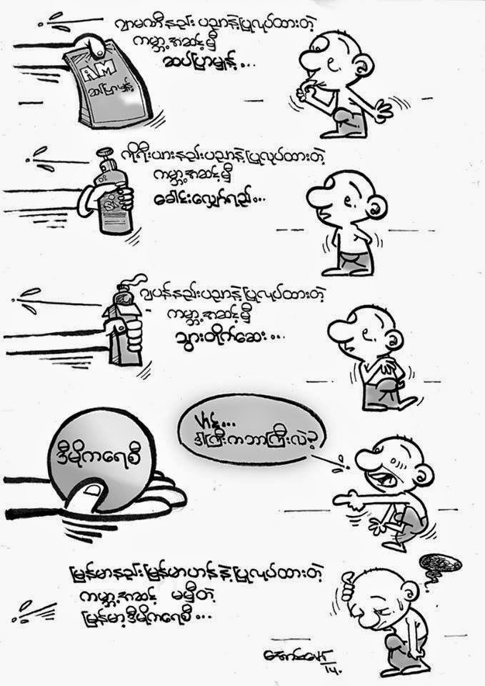 ကာတြန္းေအာင္ေမာ္၏ ေဖ့ဘုတ္ခ္စာမ်က္ႏွာမွ ျပန္လည္ကူးယူျခင္းျဖစ္ပါသည္။