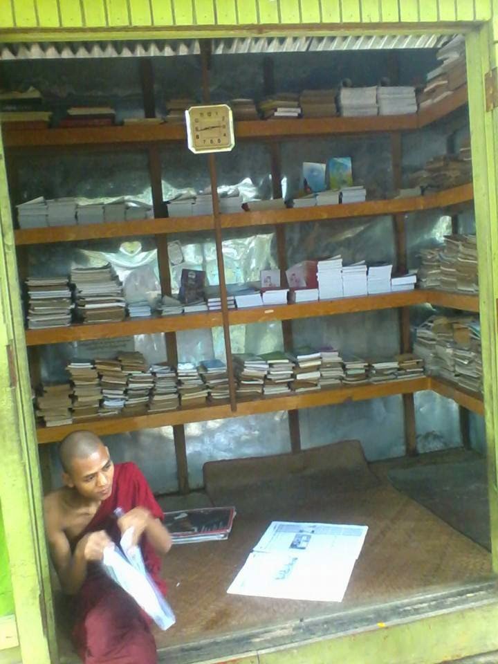 ” ဓမၼပိယဆရာေတာ္ဆီ စာမူသြားယူေတာ့ ေက်ာင္းေပါက္မွာ ဆရာေတာ္စီစဥ္ေပးထားတဲ့ ပိေတာက္ရိပ္ စာဖတ္တန္းလ်ားေလးမွာ အ ေမာေျဖခြင့္ရခ့ဲပါတယ္။ ေန ့စဥ္ သတင္းစာဂ်ာနယ္ ၆ ေစာင္ေလာက္ ထားေပးပါသတဲ့။ အဲဒီနားက ဆိုက္ကားဆရာေတြကအစ ဟန္က်ေန ေတာ့တာေပါ့။”