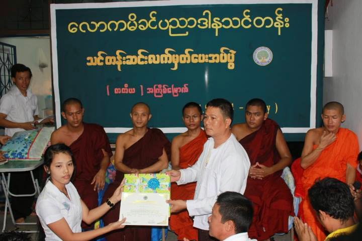 သင္တန္းနည္းျပဆရာေတာ္မ်ားျဖစ္တဲ့ အရွင္အာစိဏၰသီရိ၊ အရွင္ပညာေဇာတ၊ အရွင္ၾသသဓတို ့မွလည္းဆုံးမၾသ၀ါဒမ်ားေဟာၾကား ျပီးေနာက္မွာ အဂၤလိပ္၊ ထိုင္းနဲ ့ကြန္ပ်ဴတာဘာသာရပ္တို ့မွ ထူးခၽြန္ေအာင္ျမင္ၾကေသာ သင္တန္းသား (၃၅) ဦးကို သင္တန္းဆင္း ေအာင္လက္မွတ္နဲ ့အတူ ဆုအျဖစ္ လက္ေဆာင္ပစၥည္းမ်ားပါ ပူးတြဲ ဂုဏ္ျပဳ ခ်ီးျမွင့္ေပးပါတယ္။ ပထမ၊ ဒုတိယ၊ တတိယ အဆင့္ဆုရရွိသူမ်ားကို သင္တန္းဆရာမ်ားျဖစ္တဲ့ ဆရာေတာ္မ်ားမွ ဆုခ်ီးျမွင့္ေပးၿပီး တတိယ၊ စတုတၳ၊ ပဥၥမအဆင့္ ဆုရသူမ်ားကိုေတာ့ သင္တန္းေကာ္မတီ၀င္လူႀကီးမ်ားက ဆုခ်ီးျမွင့္ေပးေၾကာင္းသိရပါတယ္။
