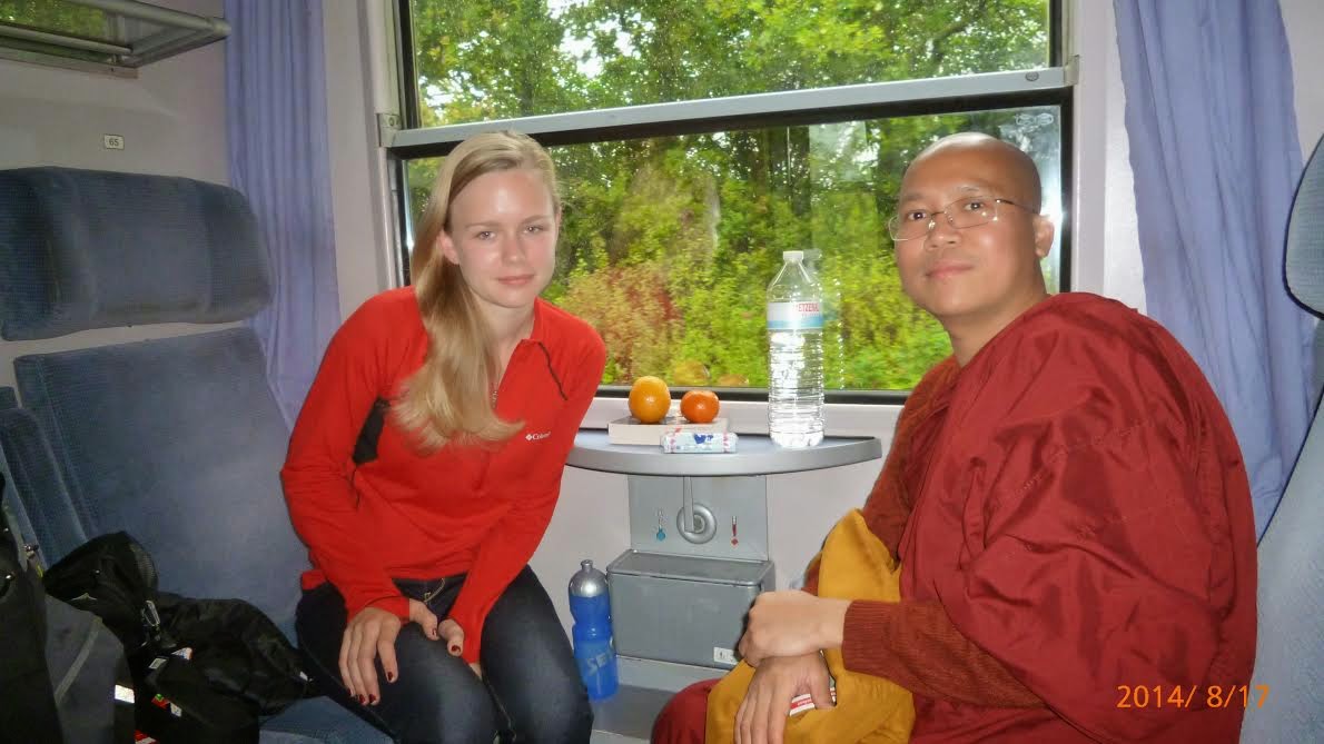 “ငါ ေျပာတာေတြ မ်ားသြားၿပီ၊ မင္းလည္း ေျပာပါဦး”ဆိုမွ သူက သူ႕အေၾကာင္းေတြကို ေျပာျပသည္။ သူက ဆြစ္ဇာလန္ႏိုင္ငံသူ၊ အသက္ ၂၁ ႏွစ္အရြယ္ ေက်ာင္းသူ၊ မိ႐ိုးဖလာခရစ္ယာန္၊ ဘုရားေက်ာင္းကို အခမ္းအနားရွိမွ ေရာက္ဖူးသည္။ အစက စကားမေျပာျဖစ္ေသာ္လည္း ေျပာမည့္ေျပာေတာ့ ခရားေရလႊတ္သလို ေျပာသည္။ အလြန္သိခ်င္၊ စပ္စုခ်င္ေသာ ဥေရာပသားတို႔ ထံုးစံ ေပၚလာပုံရသည္။ အဂၤလိပ္လိုေန႔စဥ္ မေျပာျဖစ္သျဖင့္ အခ်ိဳ႕ေနရာမ်ားတြင္ ႏွစ္ႀကိမ္ျပန္ျပန္ေမးရသည္။ ဗုဒၶဘာသာႏွင့္ပတ္သက္၍ အင္တာနက္စာမ်က္ႏွာ မ်ားတြင္ အနည္းငယ္ဖတ္ဖူးသည္။ ေရွာင္လင္ဘုန္းဘုန္းမ်ားႏွင့္ တိဗက္ဘုန္းႀကီးမ်ားအေၾကာင္းကိုေတာ့ အေတာ္မ်ားမ်ား ေတြ႕ဖူးသည္ဟု ဆိုသည္။