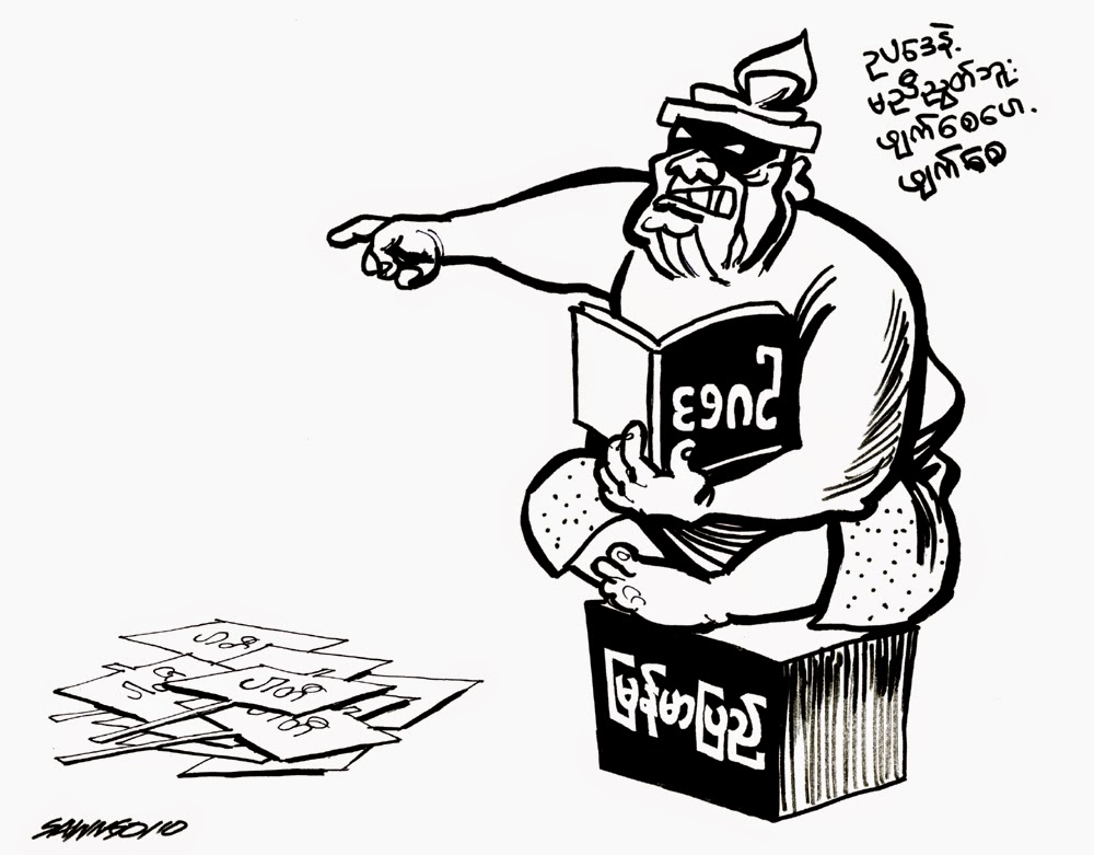 ေဗဒင္ေမးရင္ ေငြကုန္လိမ့္မယ္၊ ဆန္ကုန္ပါလိမ့္မယ္္ ။ (၂၀၀၈) ဖြဲ႕စည္းအုပ္ခ်ဳပ္ပံုအေျခခံဥပေဒကခြင့္ျပဳမဲ့ စစ္ဒီမိုကေရစီဆိုတာ ဘယ္လိုဟာမ်ိဳးလည္း … အရွင္းဆံုးေရးျပရရင္ေတာ့ ..စစ္တပ္ကေပးတဲ့ ဒီမိုကေရစီပါဘဲ ။ စစ္တပ္ကေပးမဲ့ ဒီမိုကေရစီဆိုတာ ဘယ္လိုဒီမိုကေရစီမ်ိဳးျဖစ္မလဲ ။ စစ္အာဏာရွင္ရဲ့ အာဏာကိုမထိပါးနိဳင္တဲ့ မည္ကာမတ္တ ဒီမိုကေရစီမ်ိဳး ၊ အာဏာရွင္နဲ ့အေပါင္းအပါေတြကို ဥပေဒအထက္မွာ ေနခြင့္ေပးတဲ့ ဒီမိုကေရစီမ်ိဳးပါဘဲ ။ တနည္းအားျဖင့္ေျပာရရင္ ဓါးမိုးထားတဲ့ ဒီမိုကေရစီပါပဲ ။