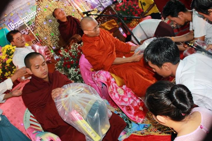 အရွင္၀ိနယ၊ အရွင္ၾသသဓ၊ အရွင္ပညာေဇာတ ဆရာေတာ္(၅)ပါးအား ကထိန္သကၤန္းနဲ ့ လွဴဖြယ္ပစၥည္းမ်ားကို ေစတနာသဒၶါထက္