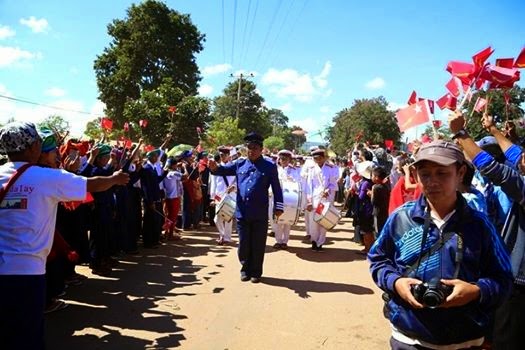 ဖယ္ခံုၿမိဳ႕နယ္အေရာက္တြင္ ေဒသခံ ျပည္သူမ်ားက ဘင္ခရာတီး၀ိုင္းျဖင့္ႀကိဳဆိုႏုတ္ဆက္ၿပီး ေဒၚေအာင္ဆန္းစုၾကည္က မိန္႔ခြန္း ေျပာၾကားခ့ဲသည္။