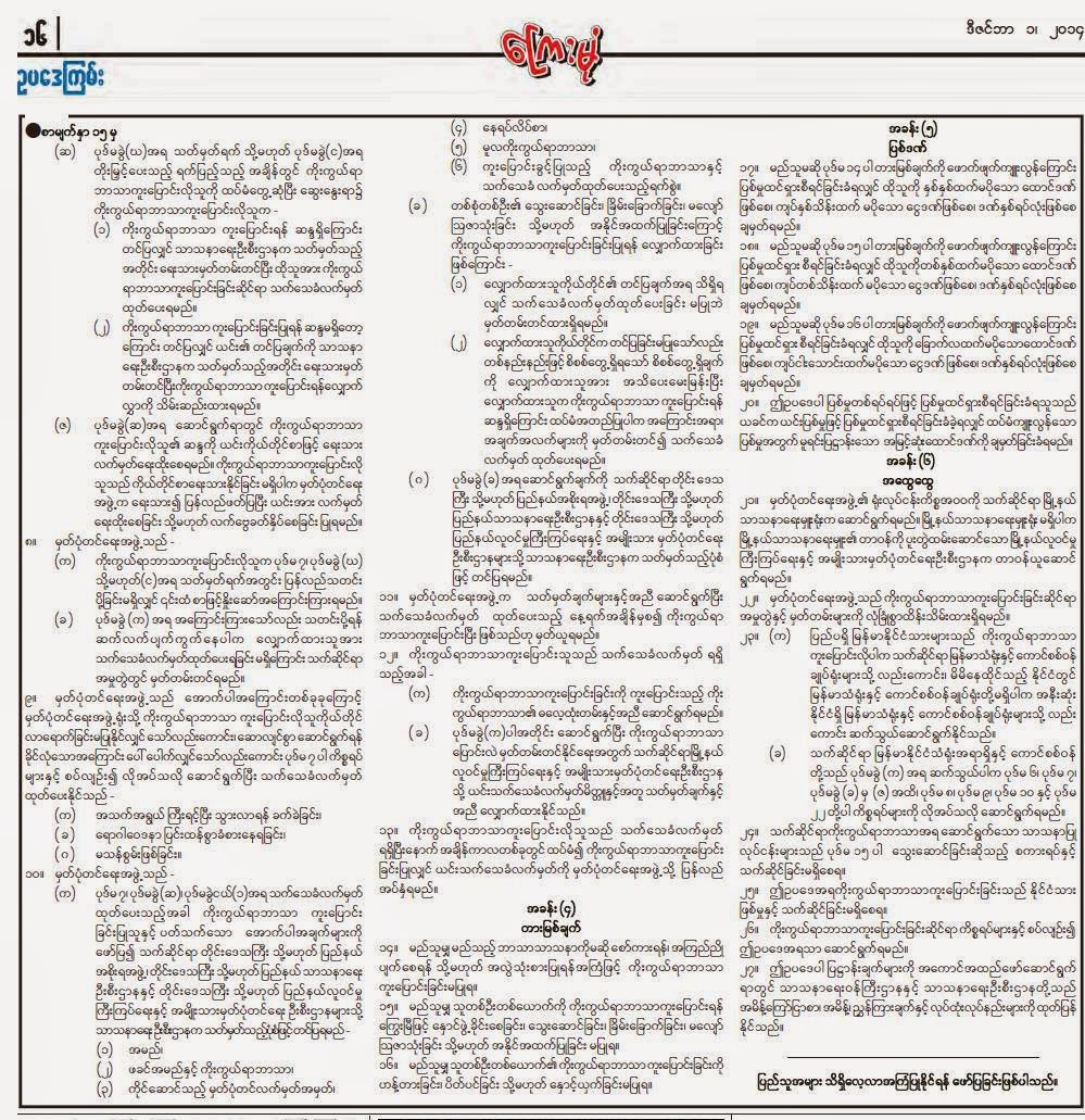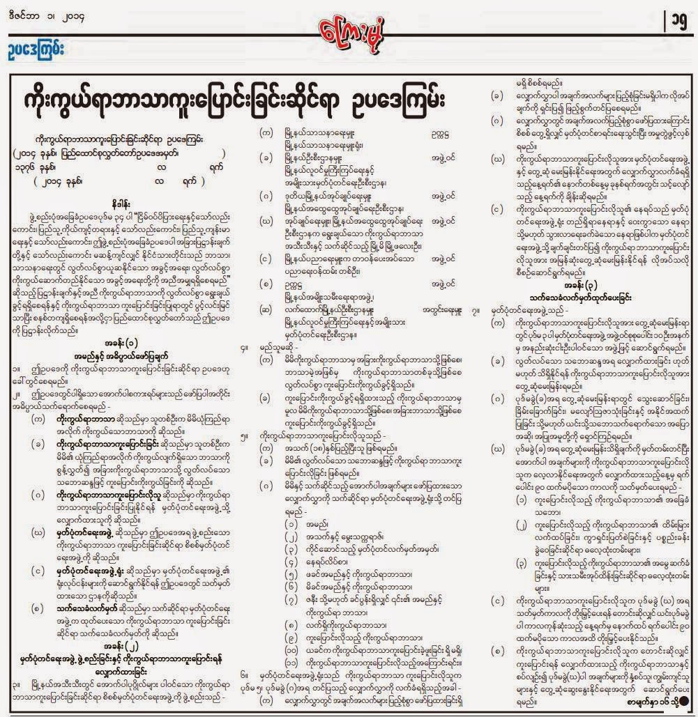 ဒီဇင္ဘာ (၁) ရက္ေန႔ ထုတ္ အစိုးရ သတင္းစာ ပါ ျပည္ေထာင္စုအစိုးရအဖြဲ႕ က ႏို၀င္ဘာလ ၂၄ ရက္ေန႔တြင္ လႊတ္ေတာ္သို႔ တင္သြင္းခဲ့သည္ ဆိုသည့္ “ကိုးကြယ္ရာဘာသာ ကူးေျပာင္းျခင္းဆိုင္ရာ ဥပေဒၾကမ္း”