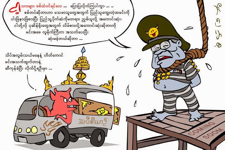 ေၾသာ္- သူထိုင္ခဲ့တဲ့ စစ္ရံုးက ခံုေလးကိုလည္း တခါတည္း မေမ့မေလွ်ာ့ထည့္ေပးလိုက္ဖို႔ လႊတ္ေတာ္မွာ ျပည္သူ႔ကိုယ္စား အမတ္မင္းႀကီးရယ္ ေျပာေပးပါ….. သူက ခံုအရမ္းႀကိဳက္ လို႔ပါ ဗ်ာ။