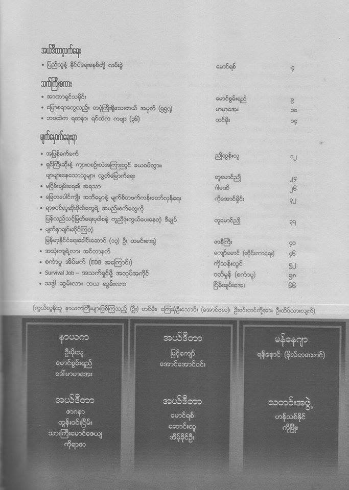 ၂၀၁၄ ရဲ့ ေနာက္ဆုုံးလ ဒီဇင္ဘာအတြက္ အထူထုုတ္ (စာမ်က္ႏွာ ၂၀၀) နဲ႔ စာေရးသူ စုုံလင္စြာျဖင့္ ထြက္ပါျပီ။ အျမိဳ့ျမိဳ့ဆိုုင္တိုုင္းမွာ ေမး၀ယ္ပါ။ မွာ၀ယ္ပါ။ စင္ကာပူမွာလည္း ၀ယ္ယူႏိုုင္ပါတယ္။