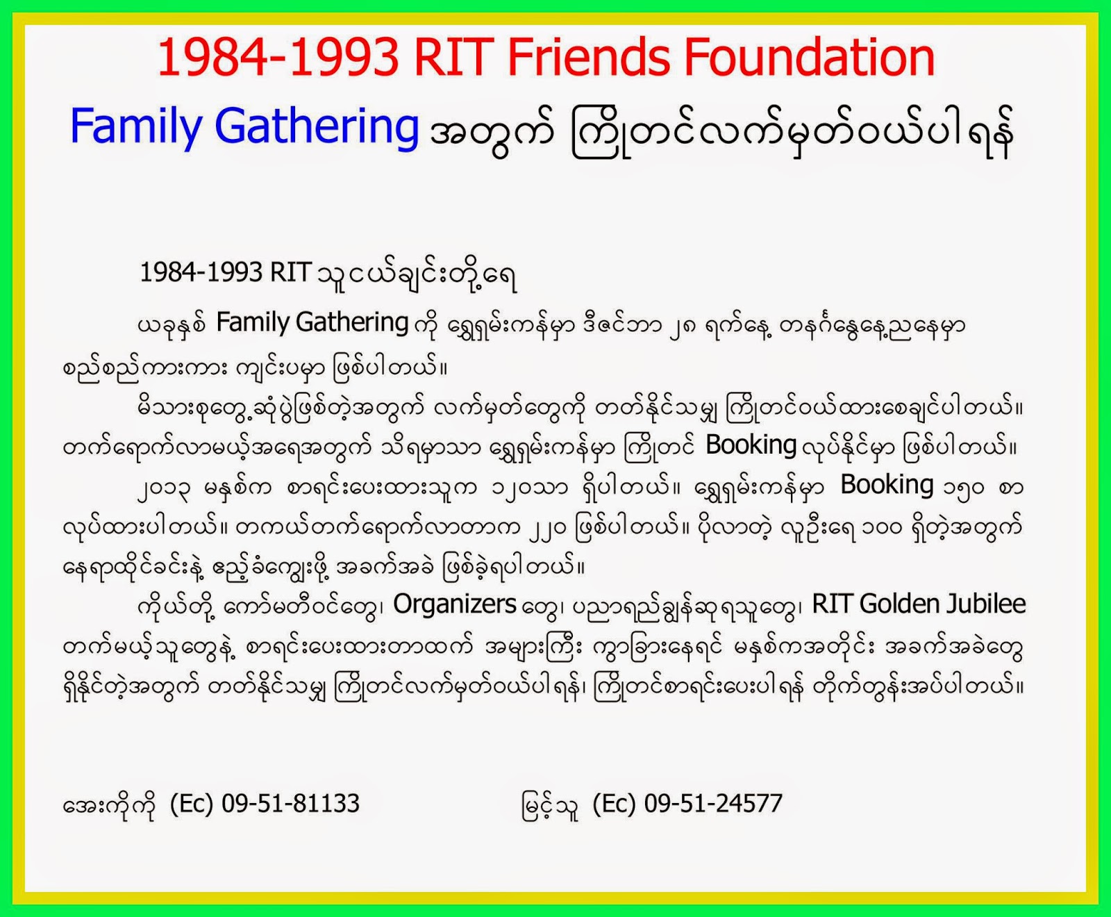 RIT Friends – 84 – 93 ဒီဇင္ဘာ မိတ္ဆုံပြဲ ဖိတ္ၾကားႏႈိးေဆာ္လႊာ