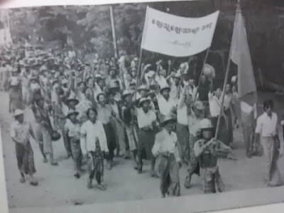 မွာ ေက်ာင္းသားဆႏၵျပပဲြကို တျမိဳ့လံုး တနယ္လံုးက ေထာက္ခံျပီး၊ ဒီေန႔အစည္းအေဝးမွာေတာင္ ေလသံေျပာင္းေနတာကို … သူမို ႔ နားမလည္ပါးမလည္ ဝင္ေျပာတယ္။