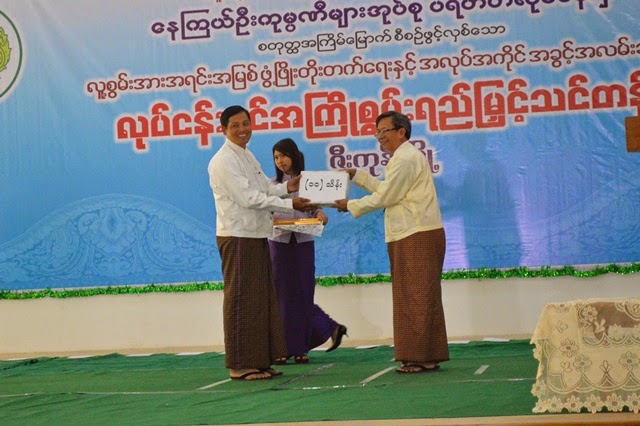 ထို႕ေနာက္ ထူးခၽြန္သင္တန္းသားမ်ားအား ဆုမ်ားေပးအပ္ခ်ီးျမွင့္ခဲ့သည္။ သင္တန္းသားမ်ားကိုယ္စား သင္တန္းသားတစ္ဦးမွ သင္တန္းဆင္းလက္မွတ္မ်ားကို လက္ခံရယူေပးၿပီး သင္တန္းသားတစ္ဦးမွ ေက်းဇူးတင္စကားေျပာၾကားကာ သင္တန္းသားတစ္ဦးမွ ေဒသဖြံ႕ၿဖိဳးေရးအတြက္ ေဆာင္ရြက္သြားမည့္ ရည္မွန္းခ်က္ အေၾကာင္းကိုေျပာၾကားခဲ့သည္။ သင္တန္းသား၊သူမ်ားမွ စုေပါင္း၍ “ဖိတ္ေခၚေနတယ္ ” သီခ်င္းသီဆိုကာ အခမ္းအနားကုိ ရုတ္သိမ္းခဲ့သည္။