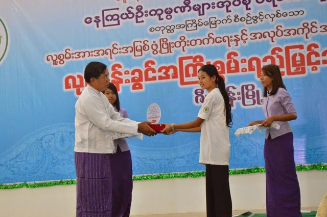 သင္တန္းသူမ်ားထဲမွ ဒုတိယ ထူးခၽြန္ဆုရခဲ့သူ မဝင္းအိၿဖဴ အားေတြ႕ဆံုေမးျမန္းျဖစ္ခဲ့ရာ “ သမီးဒီသင္တန္းမွာ ဒီလိုဆုကို ရခဲ့တဲ့ အတြက္ အရမ္းေပ်ာ္ပါတယ္။ဒီသင္တန္းကေန လုပ္ငန္းခြင္ကိုဝင္မယ္ဆိုလို႕ရိွရင္ လုပ္ငန္းခြင္နဲ႕ ပတ္သက္တဲ့ အေတြ႕အႀကံဳေတြ အမ်ားႀကီးရပါတယ္။သမီး သခ်ၤာအဓိက နဲ႕ ေက်ာင္းၿပီးထားတာပါ။ သမီးအခုေလာေလာဆယ္ေတာ့ ဘဏ္မွာဝင္လုပ္ဖို႕ စဥ္းစားထားပါတယ္။ သမီးလုပ္ခ်င္တေတာ့ အျပင္ အလုပ္ပါ။ ဒါေပမဲ့ အေတြ႕အႀကံဳရေအာင္ ဝင္လုပ္ၾကည့္မိမွာပါ။ ၿပီးရင္ေတာ့ အိမ္က စီးပြားေရးလုပ္ငန္းကို ဝင္ေရာက္လုပ္ကိုင္ေပးမွာပါ။အိမ္မွာက ပြဲရံုလုပ္ငန္းေတြလည္း ရိွတယ္ေလ။ ” ဟု ေပ်ာ္ရႊင္တက္ၾကြစြာ ေျဖၾကားခဲ့သည္။
