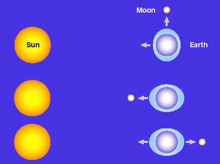 ကၽြနုုိပ္တုုိ႕၏ ပင္လယ္ေရသမုုဒၵရာမ်ားသည္ ပင္လယ္ဒီေရမ်ားတက္ရျခင္း၏ အဓိကအေၾကာင္းရင္းမွာ လ၏ဆဲြအားေၾကာင့္ ျဖစ္ပါသည္။ လ၏ဆဲြအားေၾကာင့္ ပင္လယ္ေရမ်က္နွာျပင္ကေရမ်ားသည္ အေပၚသုုိ႕ ေရွ႕သုုိ႕တက္လာရပါသည္။ ေန သည္လည္း ပင္လယ္ေရကုုိ ဆဲြယူႏုုိင္ေသာ ဆဲြအားရွိပါသည္။