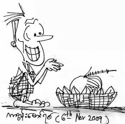 တကယ္က က်ေနာ္ ၾကားရတဲ့သတင္းကေတာ့ ၂၀၁၀ အတြက္ ဗိုလ္ခ်ဳပ္မွဴးၾကီး သန္းေရႊက အကုန္ျပင္ဆင္ထားျပီးျပီ ဆိုပဲ။ ၂၀၀၈ နာဂစ္ ျဖစ္ခဲ့တာကို သူက အျပည့္အ၀ အတုခိုးျပီး ၾကိတ္ၾကံစည္ ထားတယ္လို႔ ဆိုတယ္။ ေမွ်ာ္လင့္မထားတဲ့ နာဂစ္မုန္တိုင္းၾကီး တိုက္သြားျပီးတာေတာင္ ၂ ပတ္အတြင္း ဆႏၵခံယူပြဲ က်င္းပေပးႏိုင္တဲ့ အစိုးရမင္းမ်ားရဲ့ ဘုန္းမီးေနလကို ေလွ်ာ့မတြက္ၾကနဲ႔လို႔ ေနျပည္ေတာ္က အိမ္ေတာ္ၾကီးထဲမွ ပ်ဥ္းက်ေနတဲ့ လက္ခေမာင္း တေဖာင္းေဖာင္းခတ္ျပီး ေၾကြးေၾကာ္ေနတယ္လို႔ အတည္မျပဳႏိုင္တဲ့ လုံျခဳံစိတ္ခ်ရတဲ့ သတင္းတပ္ဖြဲ႔က ေျပာတယ္ဗ်။