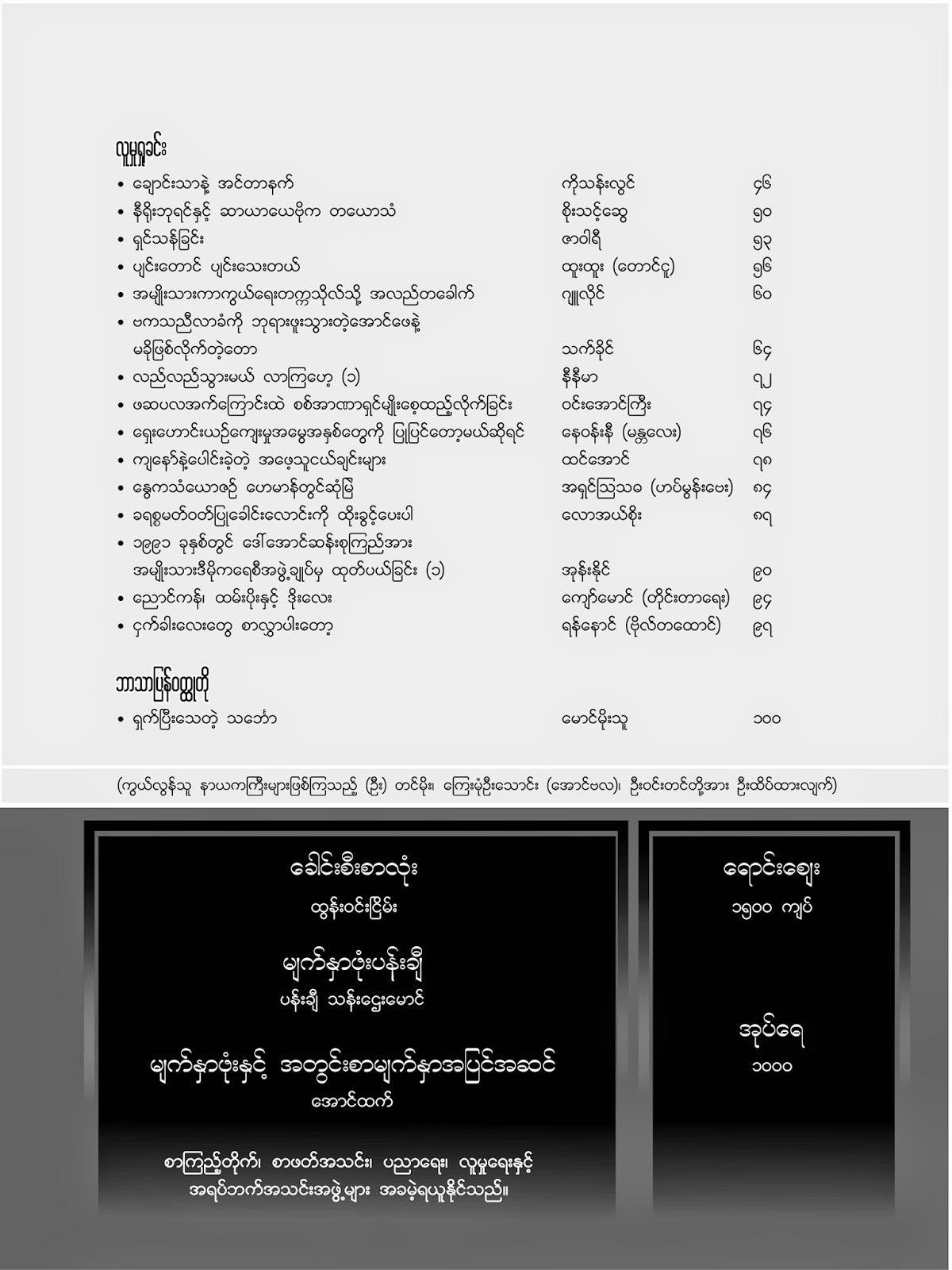 ထုံးစံအတိုင္း မ်က္ႏွာဖုံးနဲ႔ မာတိကာကို တင္ေပးလိုက္ပါတယ္။